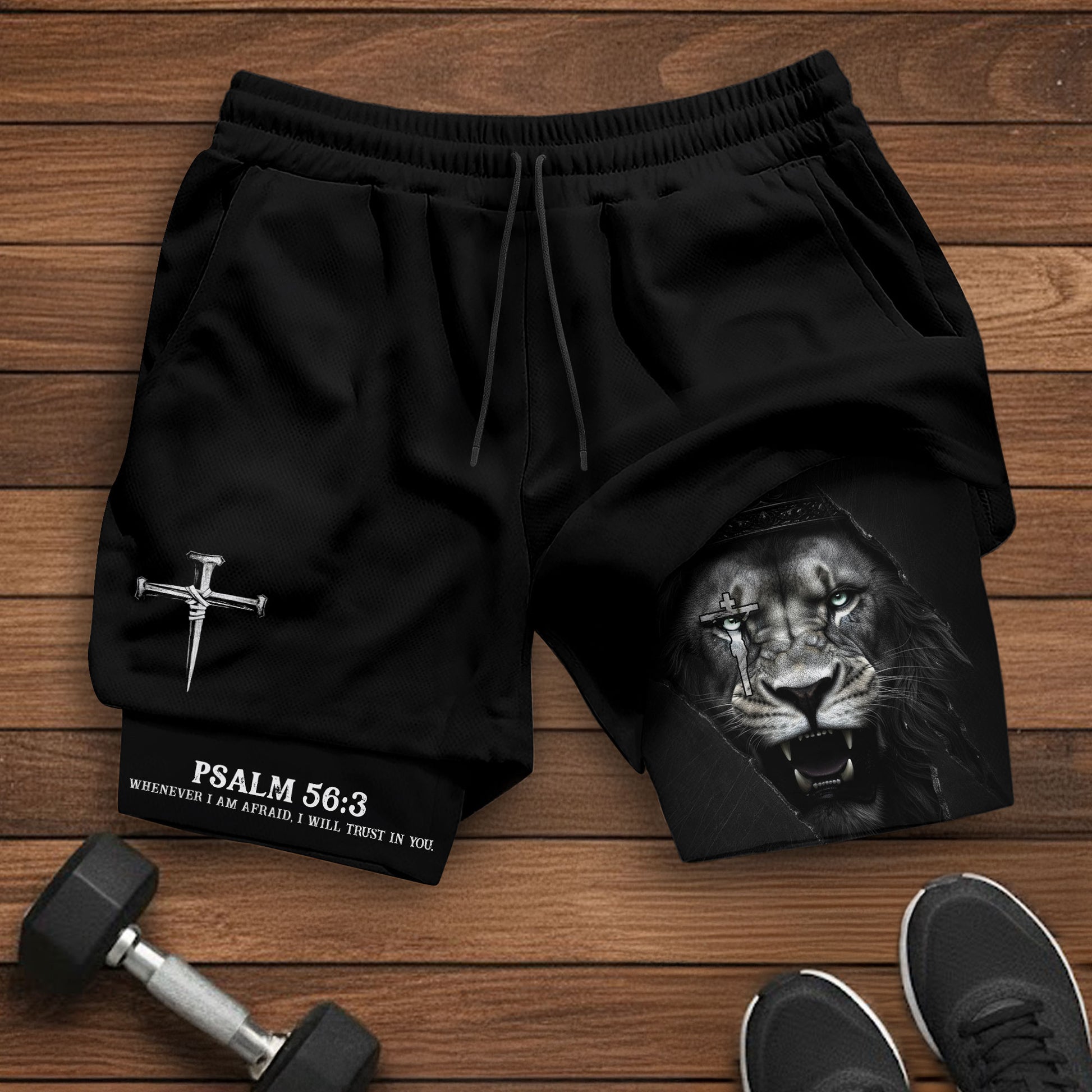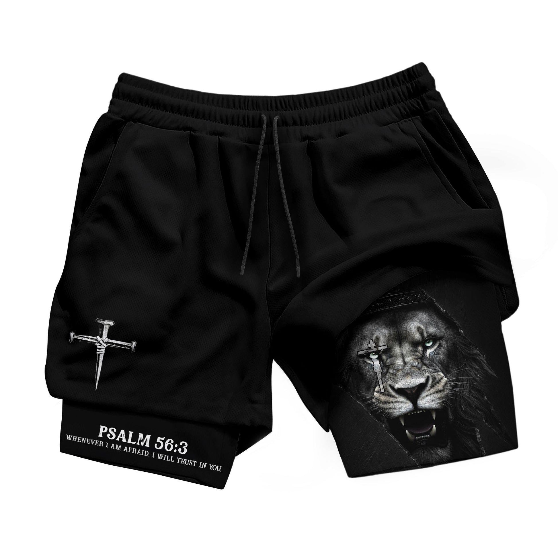 Psalm 56:3 Christian Gym Workout Shorts Men Lion of Judah Bible Verse Activewear