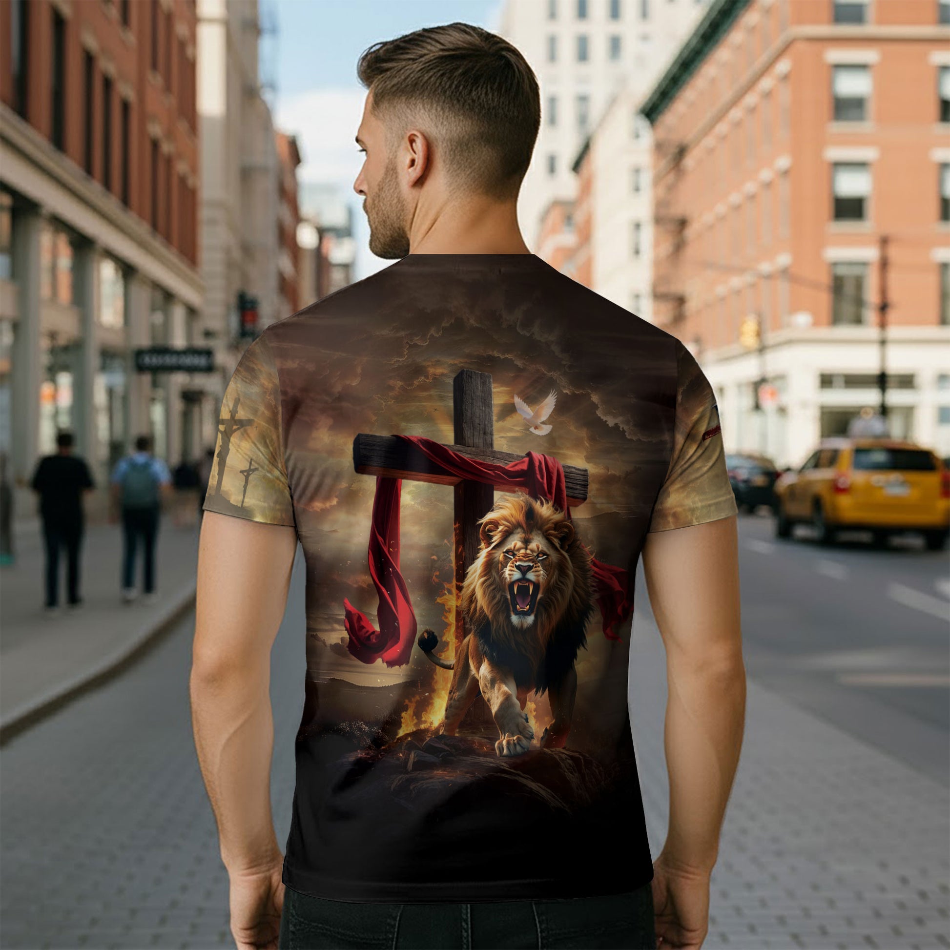 Featuring a classic round neck, short sleeves, and full all-over print design with bold Christian messages. Crafted from premium polyester for a soft, breathable, and durable wear that keeps you comfortable all day!