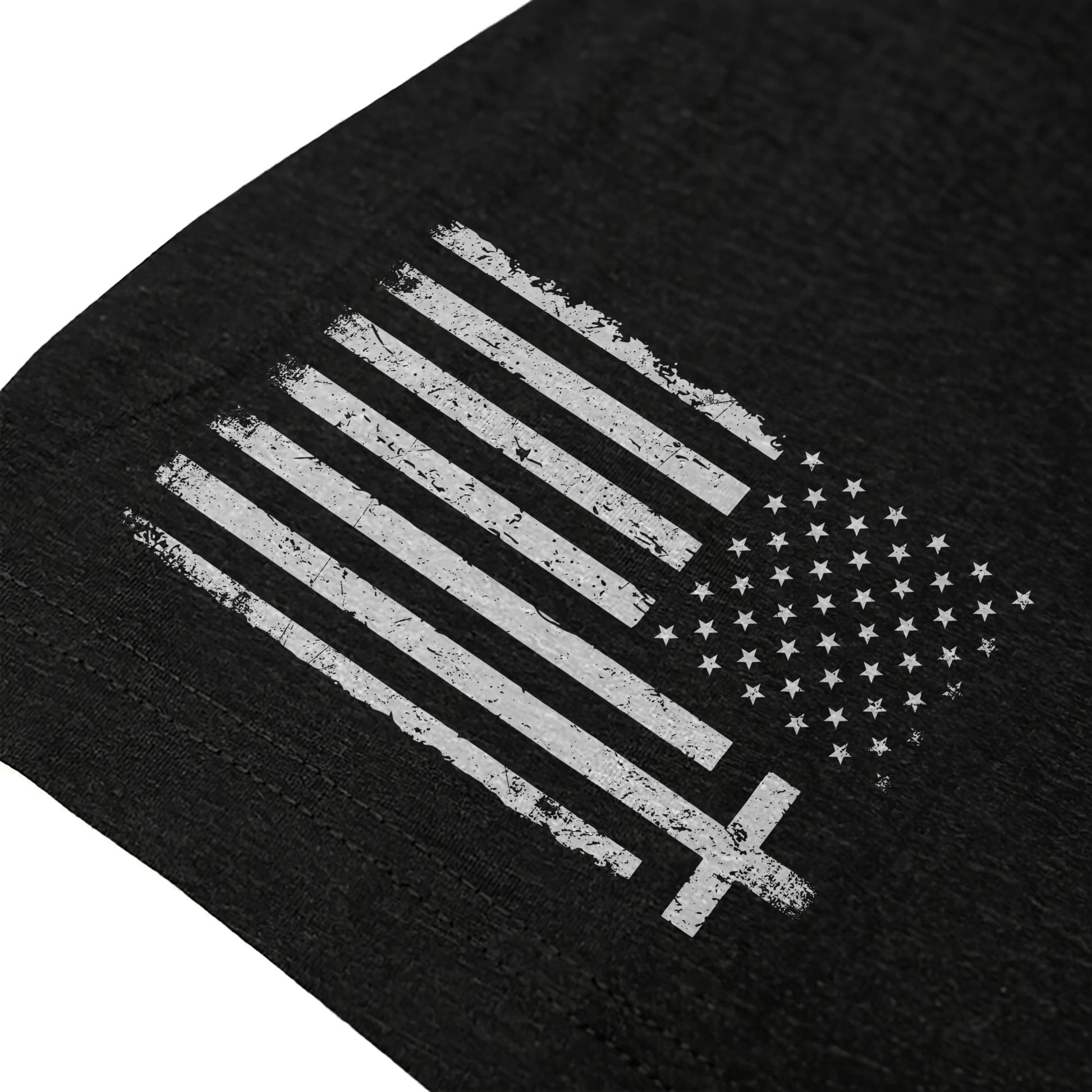 Christian t shirt featuring a cross with roots and the verse Colossians 2:7. Rooted and built up in faith, a bold statement of gratitude and thankfulness in Christ.