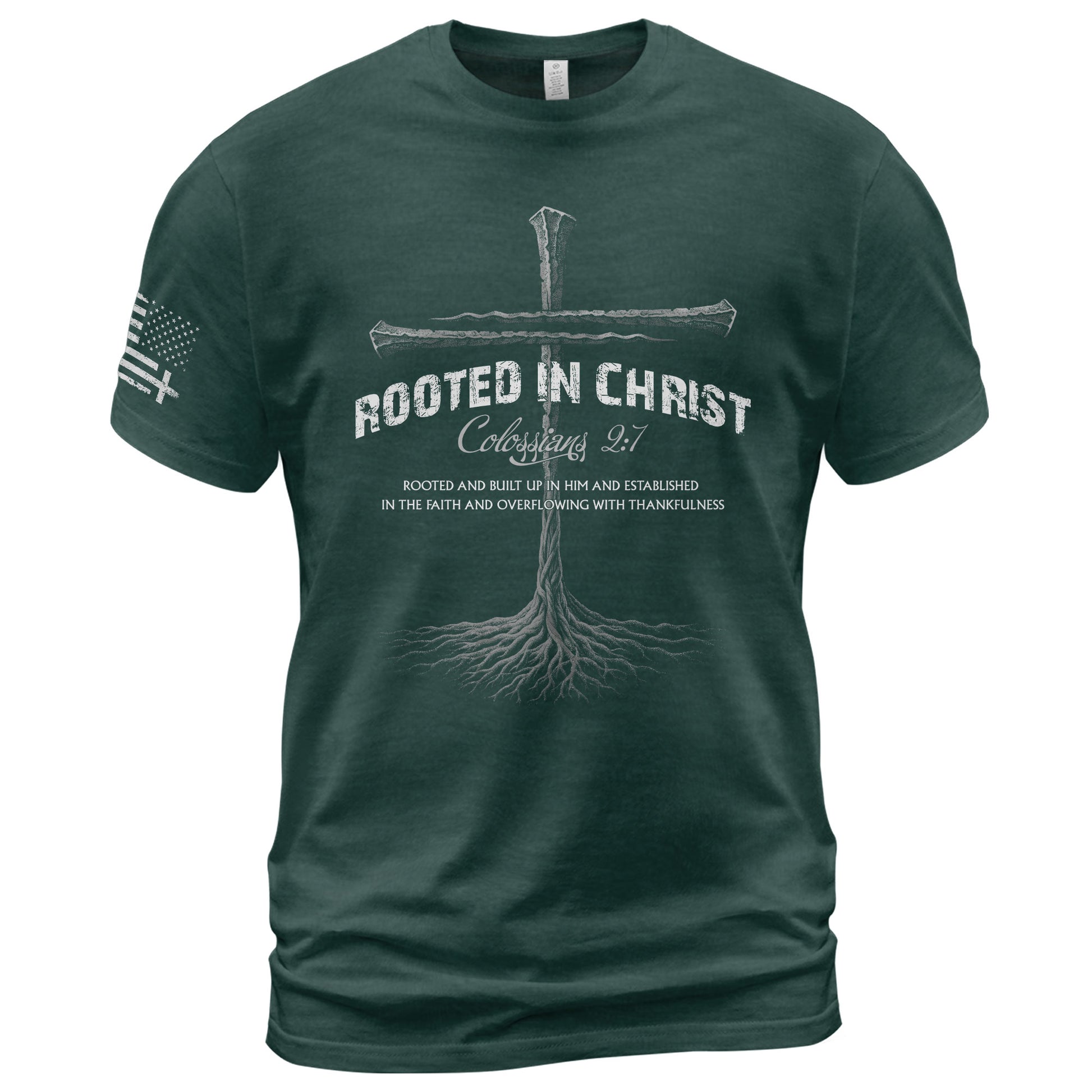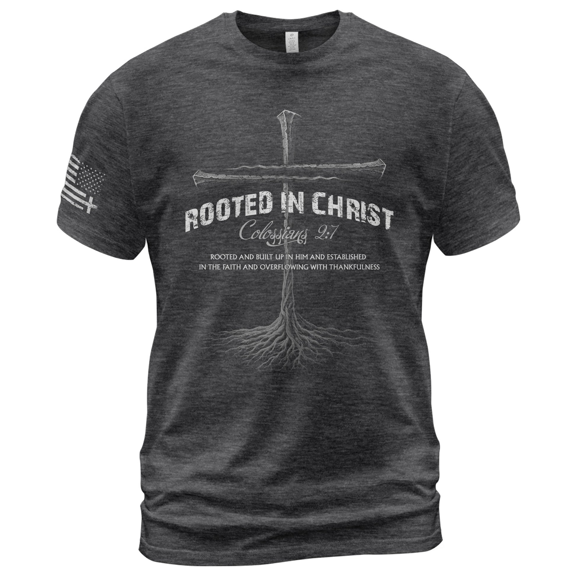 Rooted In Christ Christian T Shirt Colossians 2:7 Bible Verse