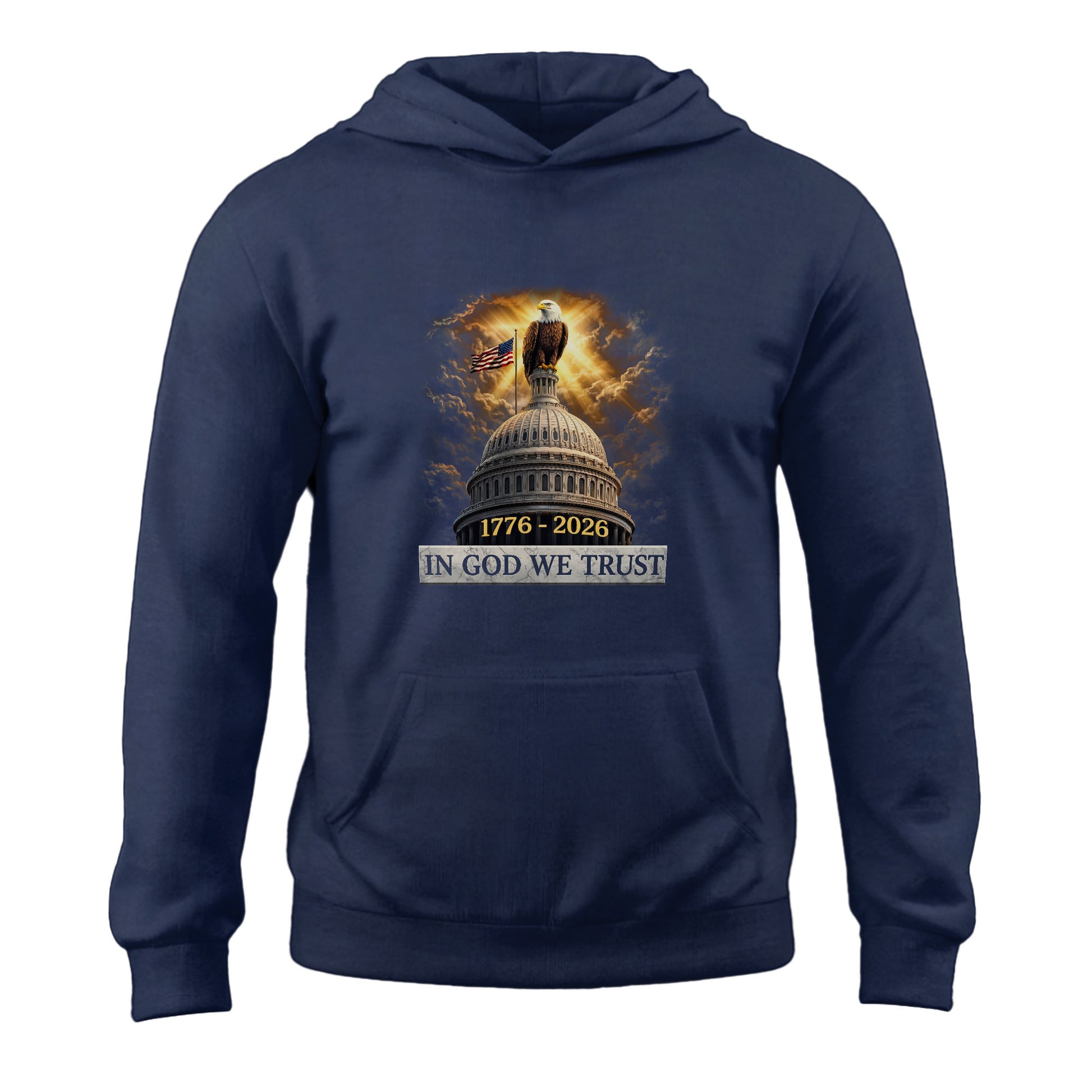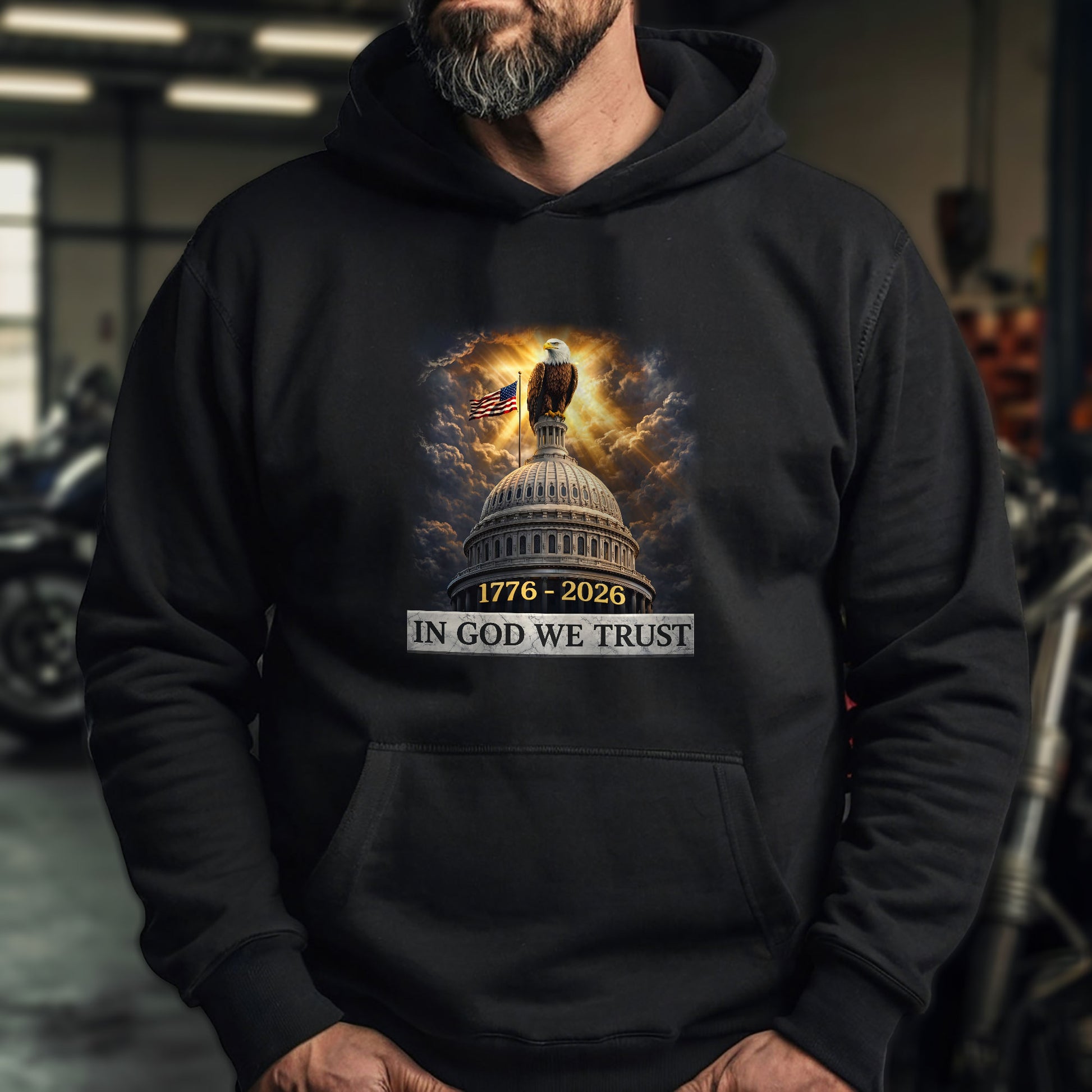 Semiquincentennial 1776–2026 Hoodie – In God We Trust Eagle Patriotic Design