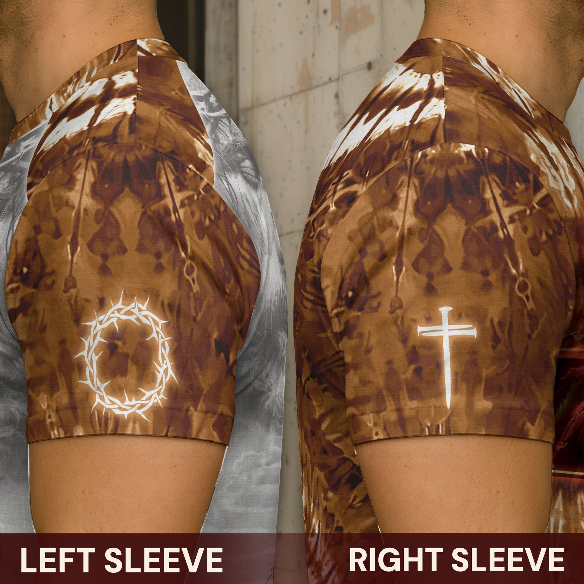 Featuring a classic round neck, short sleeves, and full all-over print design with bold Christian messages. Crafted from premium polyester for a soft, breathable, and durable wear that keeps you comfortable all day!
