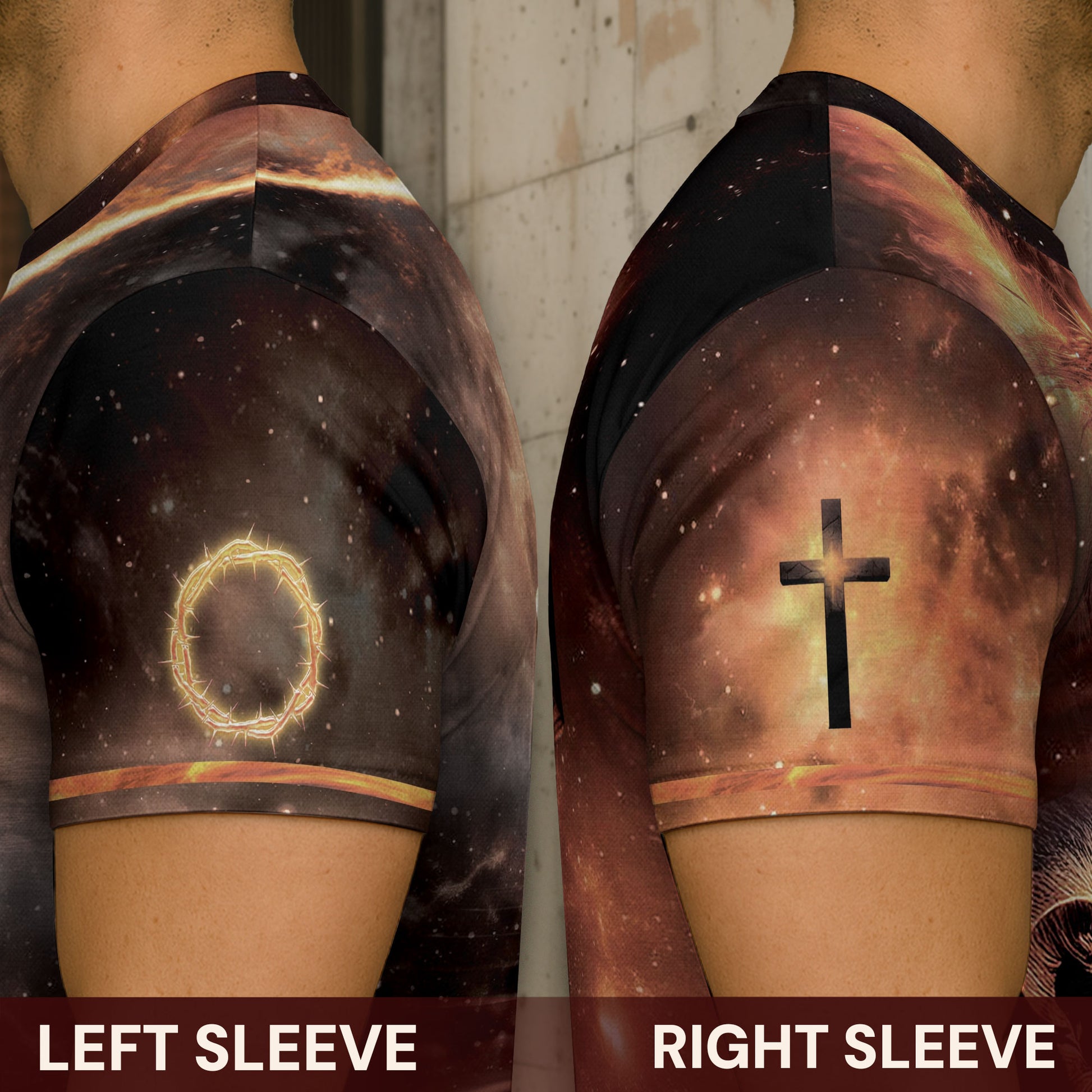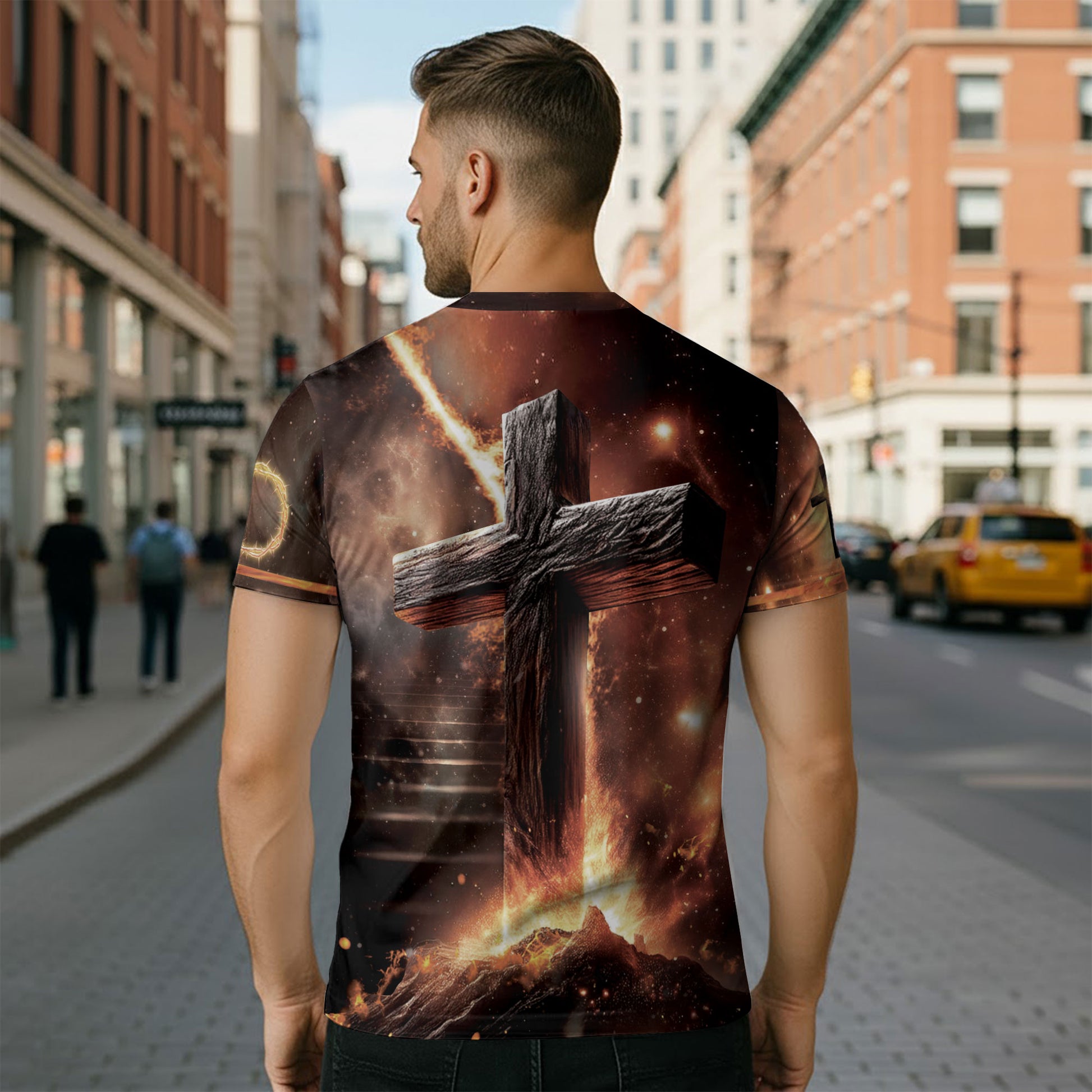 Featuring a classic round neck, short sleeves, and full all-over print design with bold Christian messages. Crafted from premium polyester for a soft, breathable, and durable wear that keeps you comfortable all day!