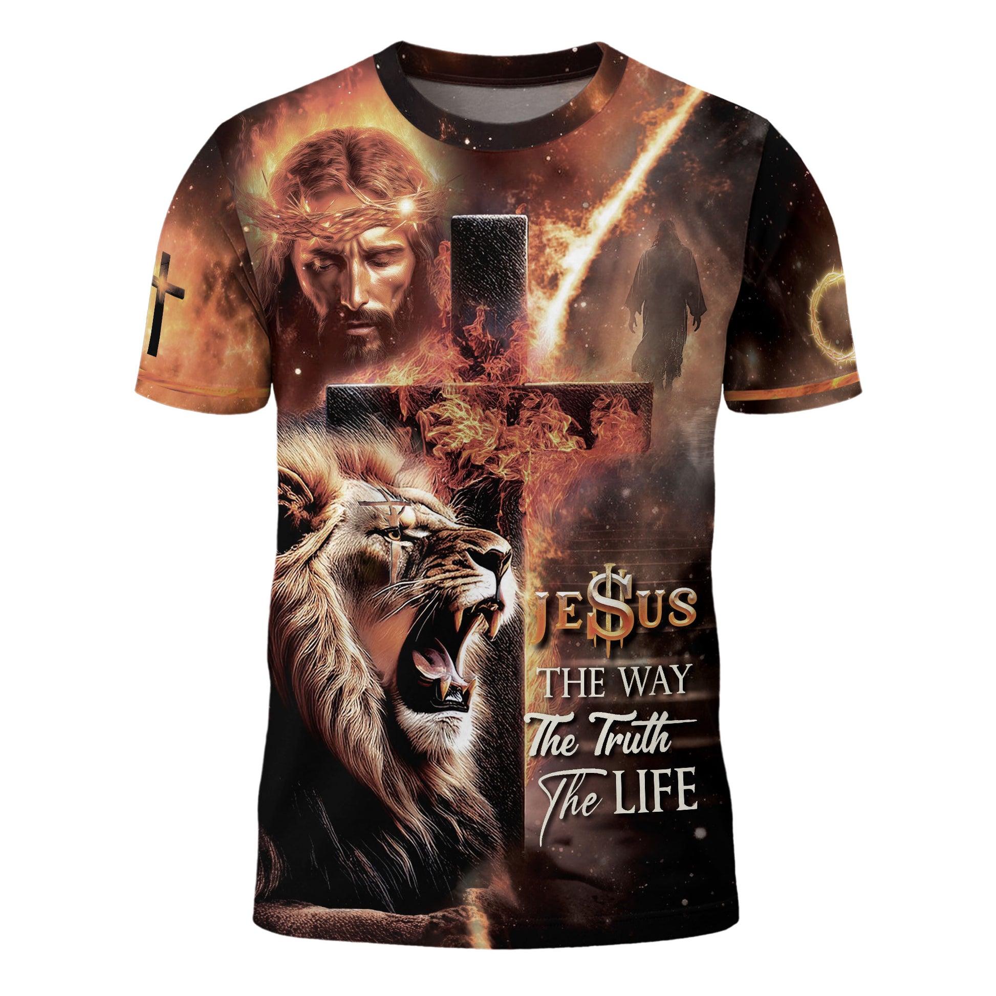 The Way The Truth The Life Lion & Cross Christian T-Shirt