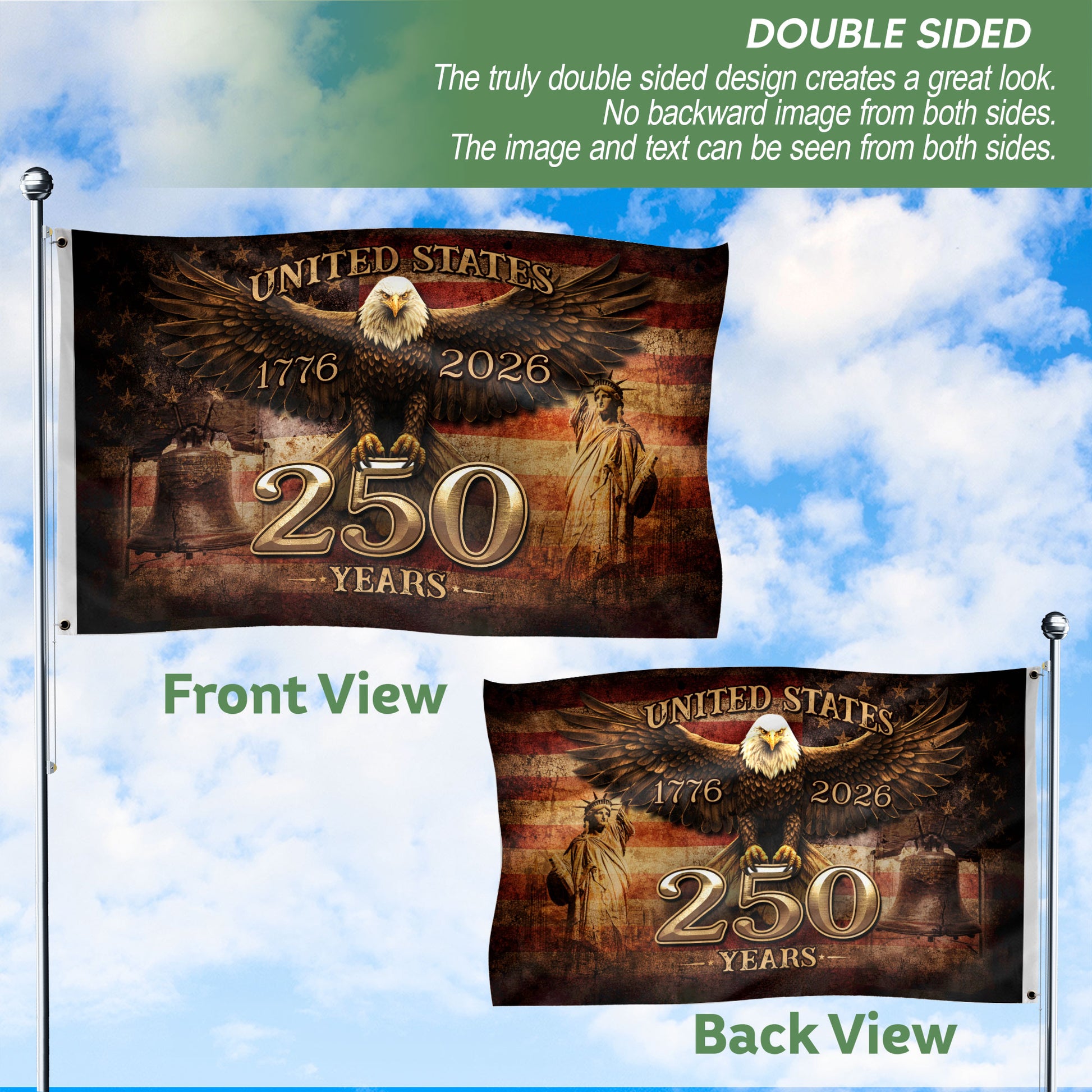 United States 250 Years Semiquincentennial Flag 1776–2026 – Eagle Patriotic American Décor