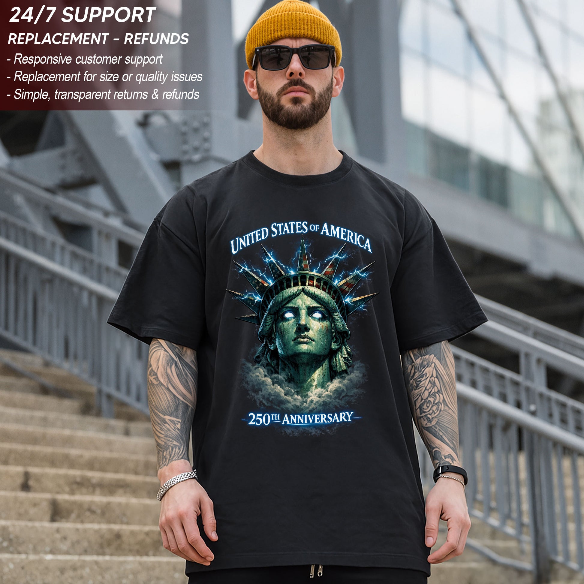 United States of America 250th Anniversary Bootleg Tee – Electric Liberty Crown Graphic