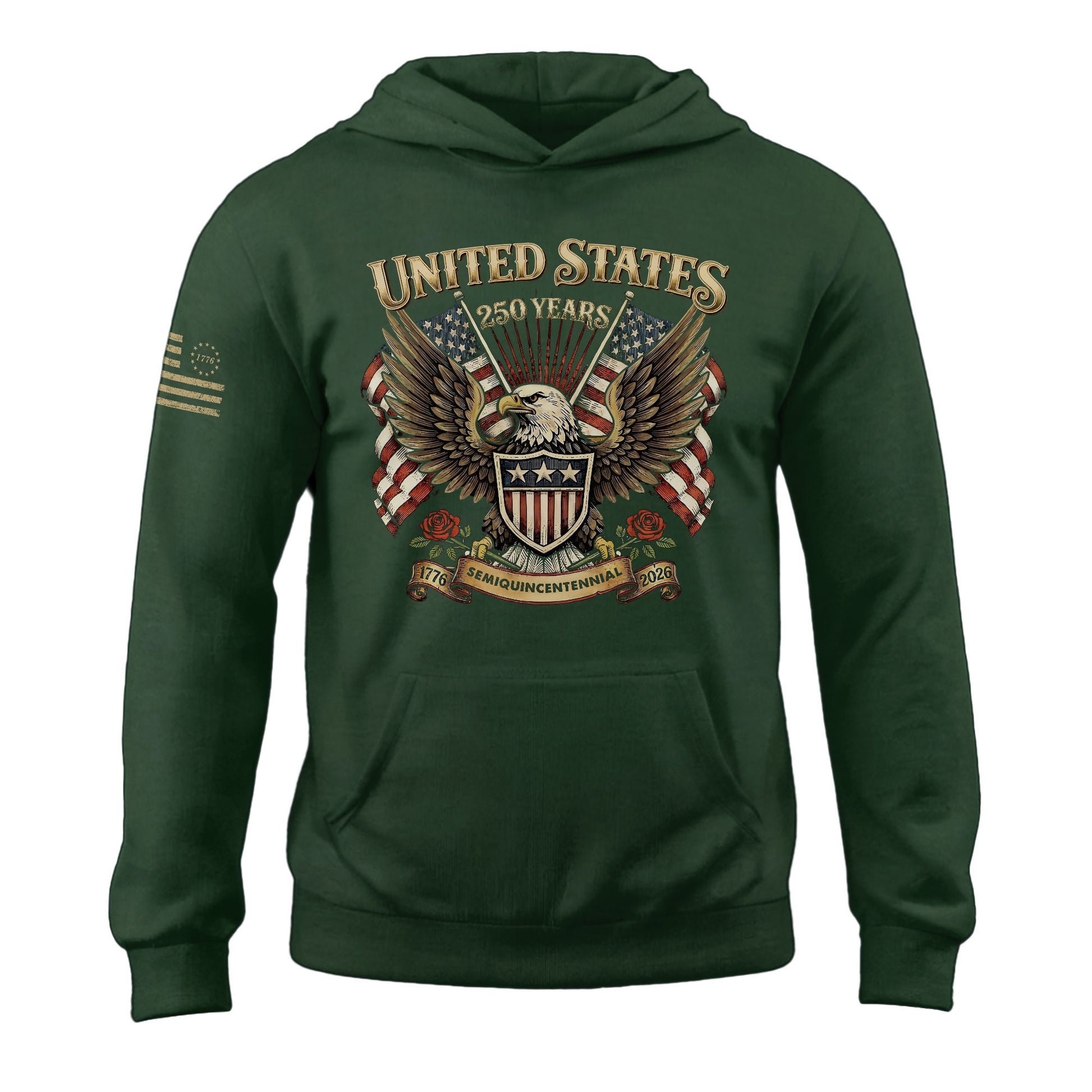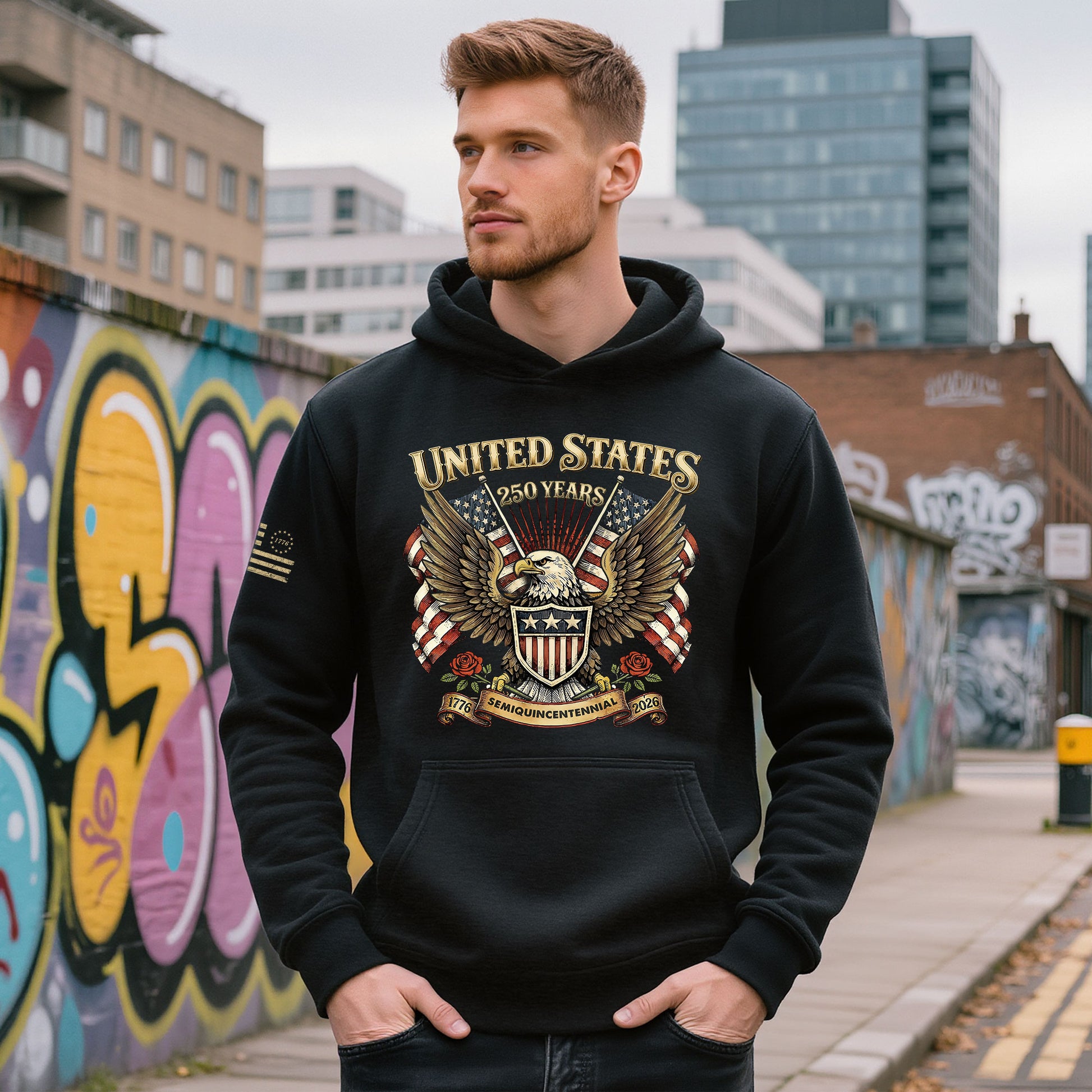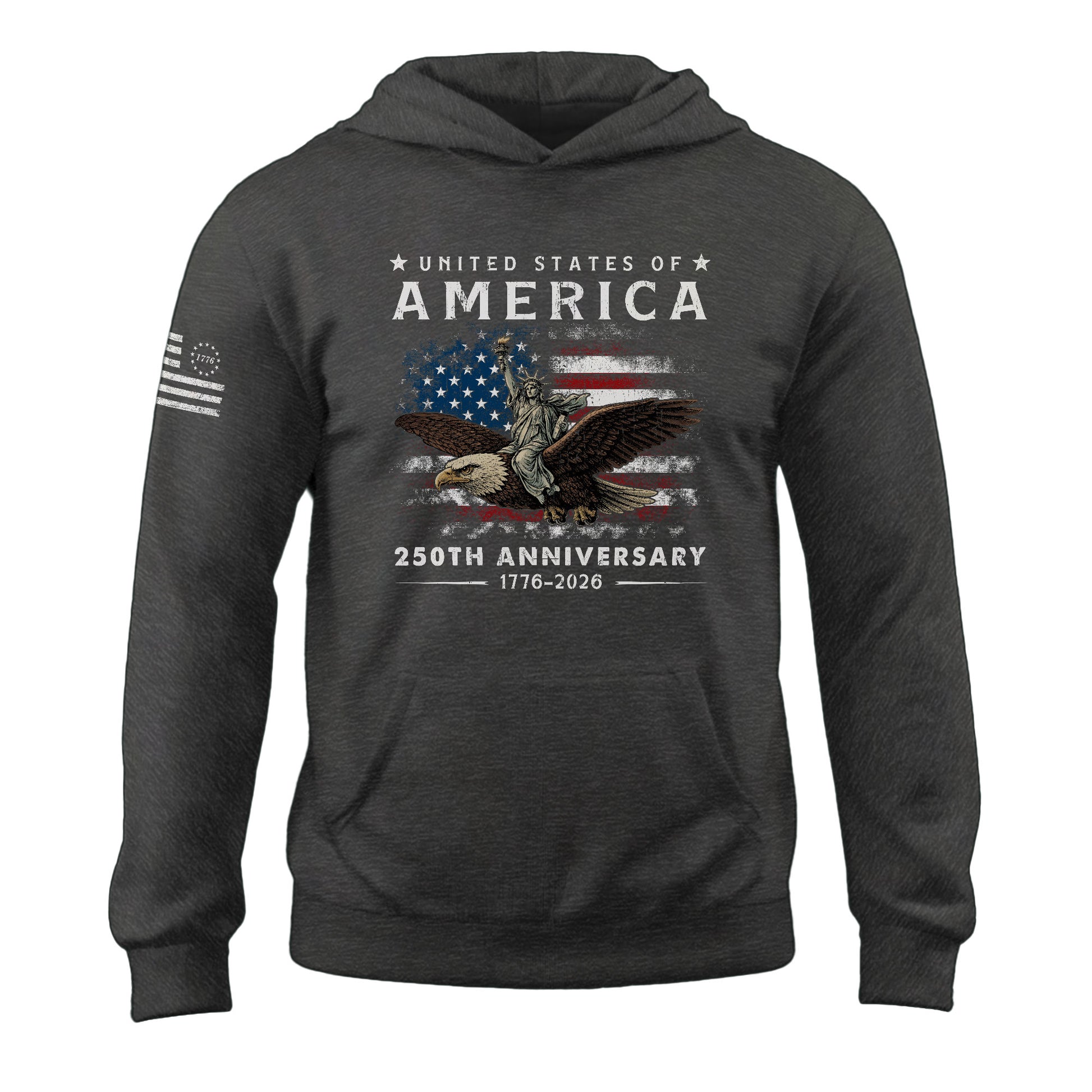 United States of America 250th Anniversary Hoodie Semiquincentennial 1776-2026 USA Flag Lady Liberty Eagle Patriotic