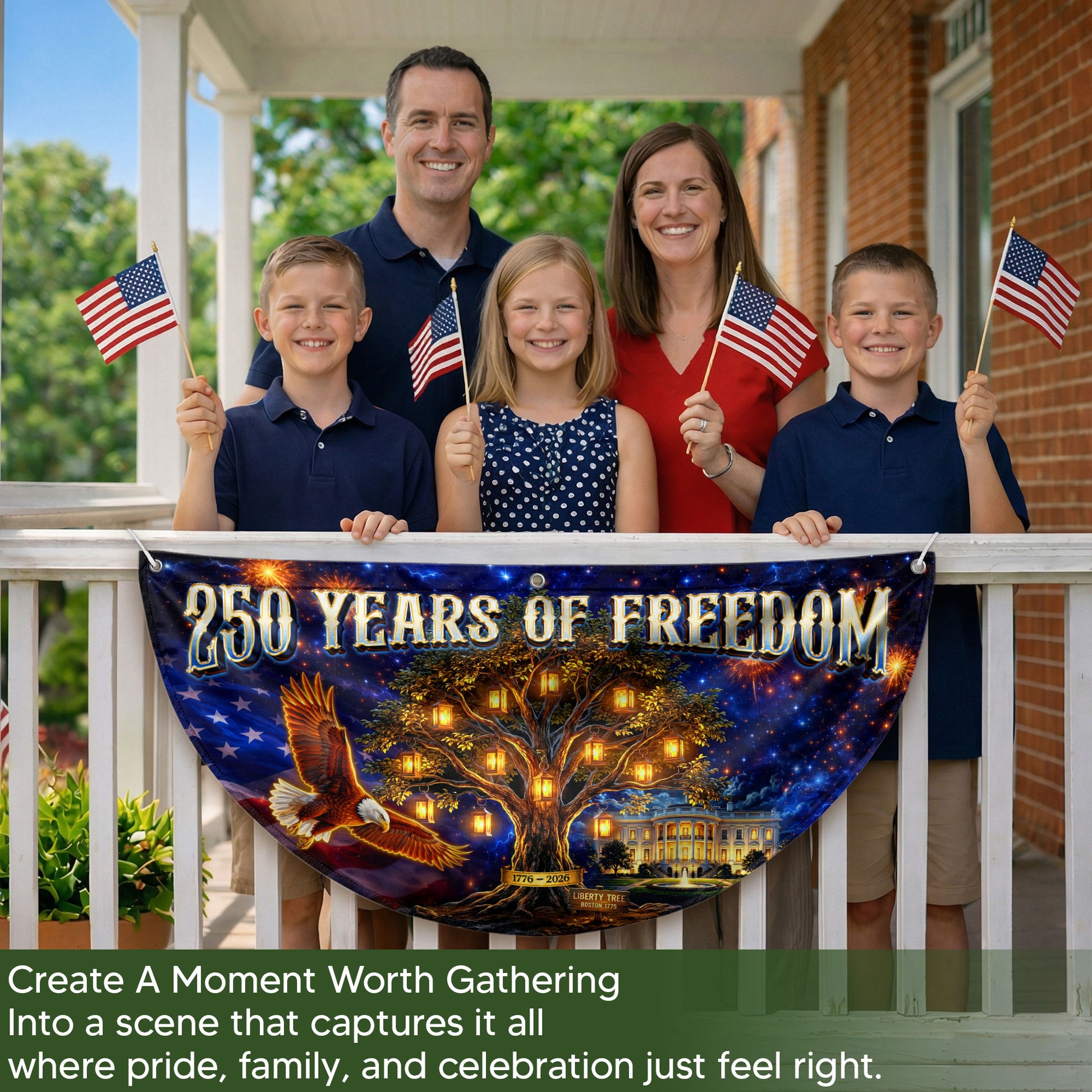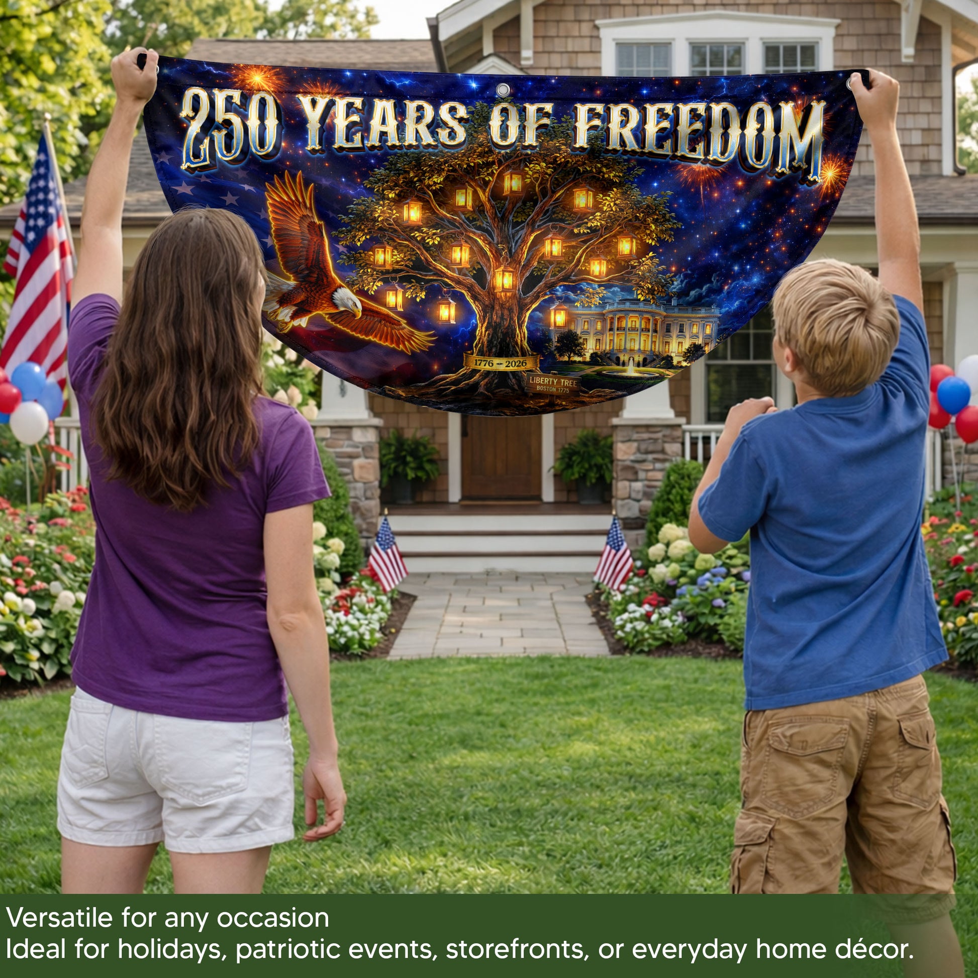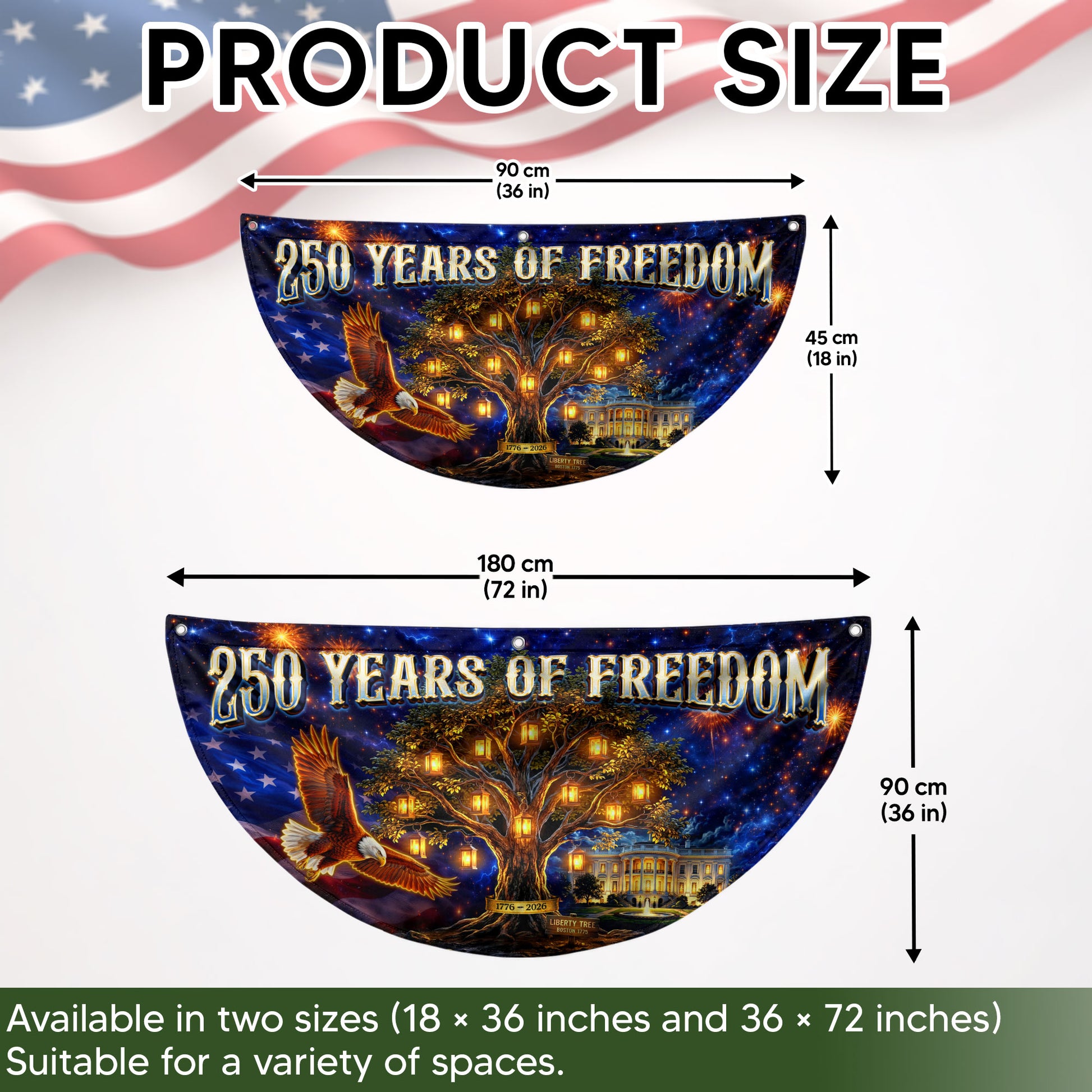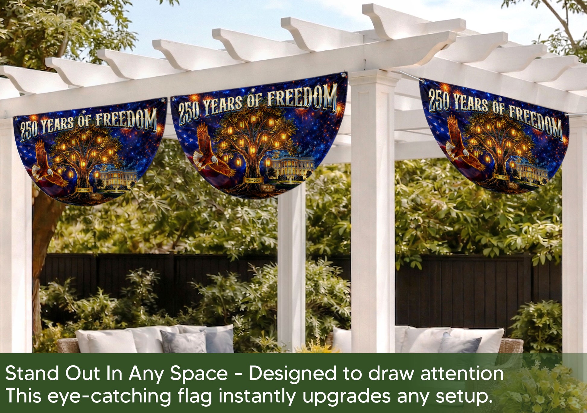 USA 250 Years Fence Banner 1776-2026 Patriotic Liberty Tree Eagle Banner