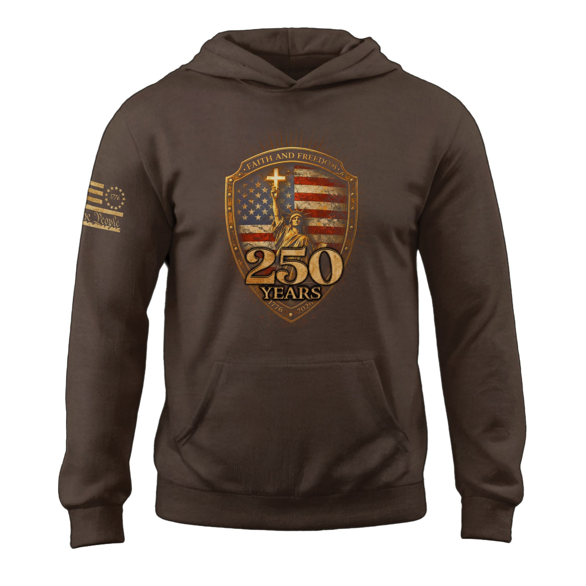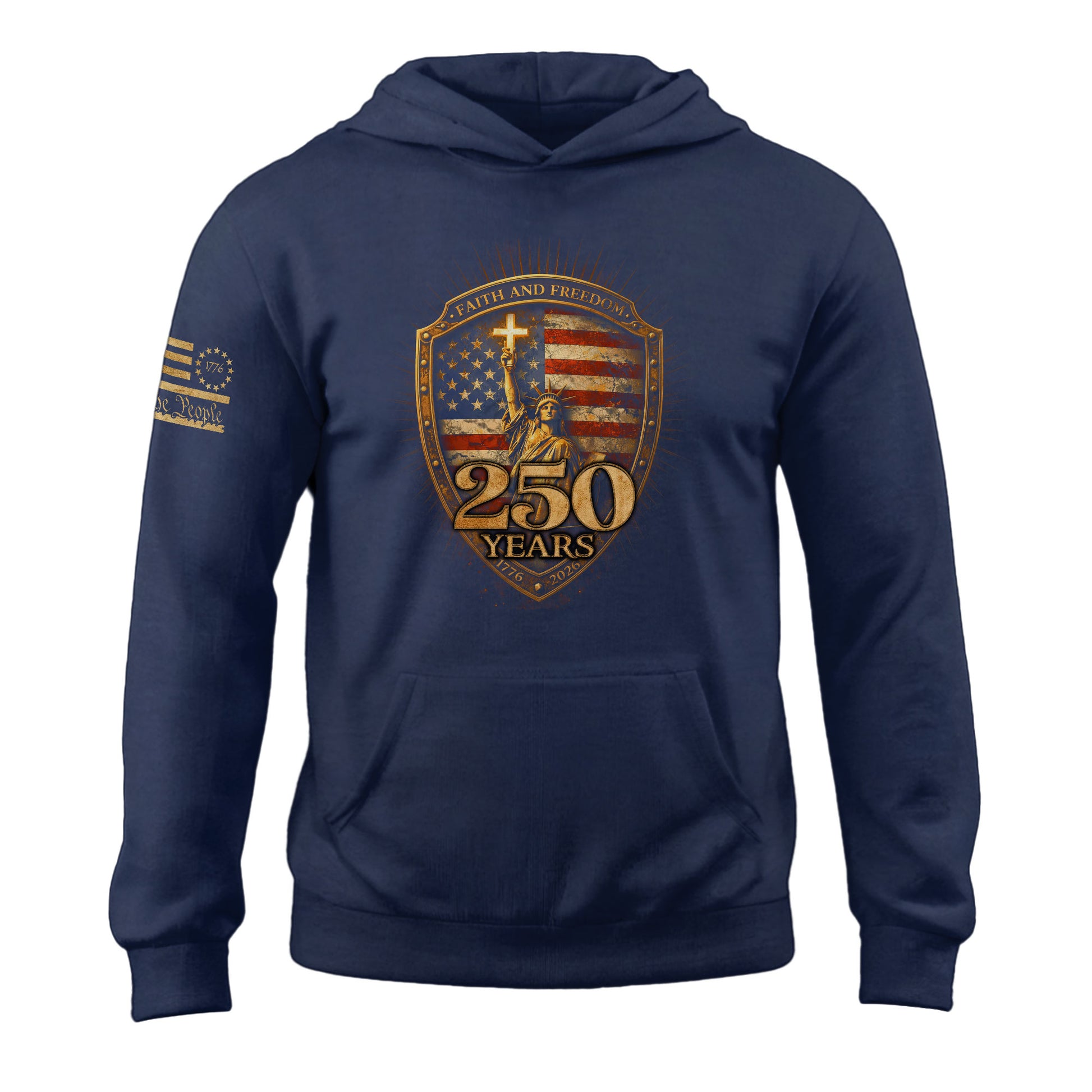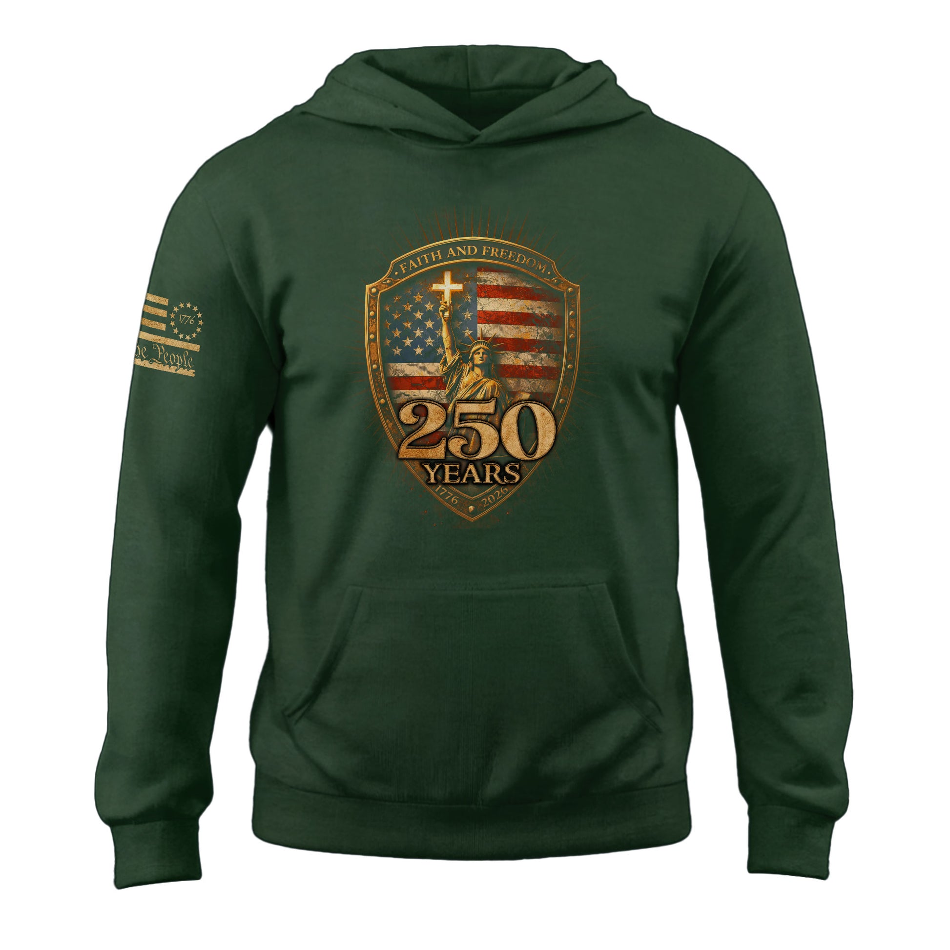 USA 250th Anniversary 1776-2026 Semiquincentennial Hoodie – Christian Faith and Freedom Statue of Liberty 250 Years Patriotic Hoodie