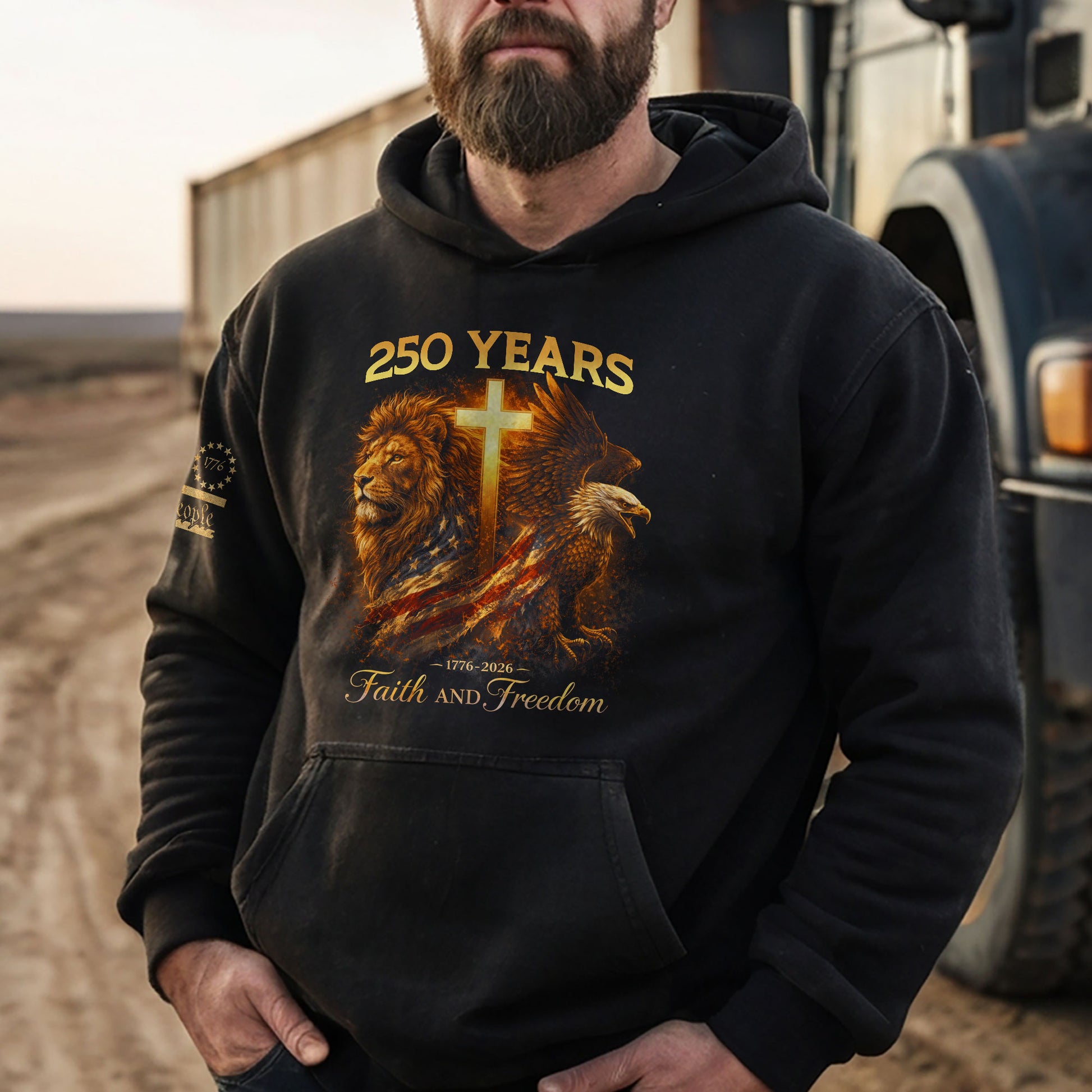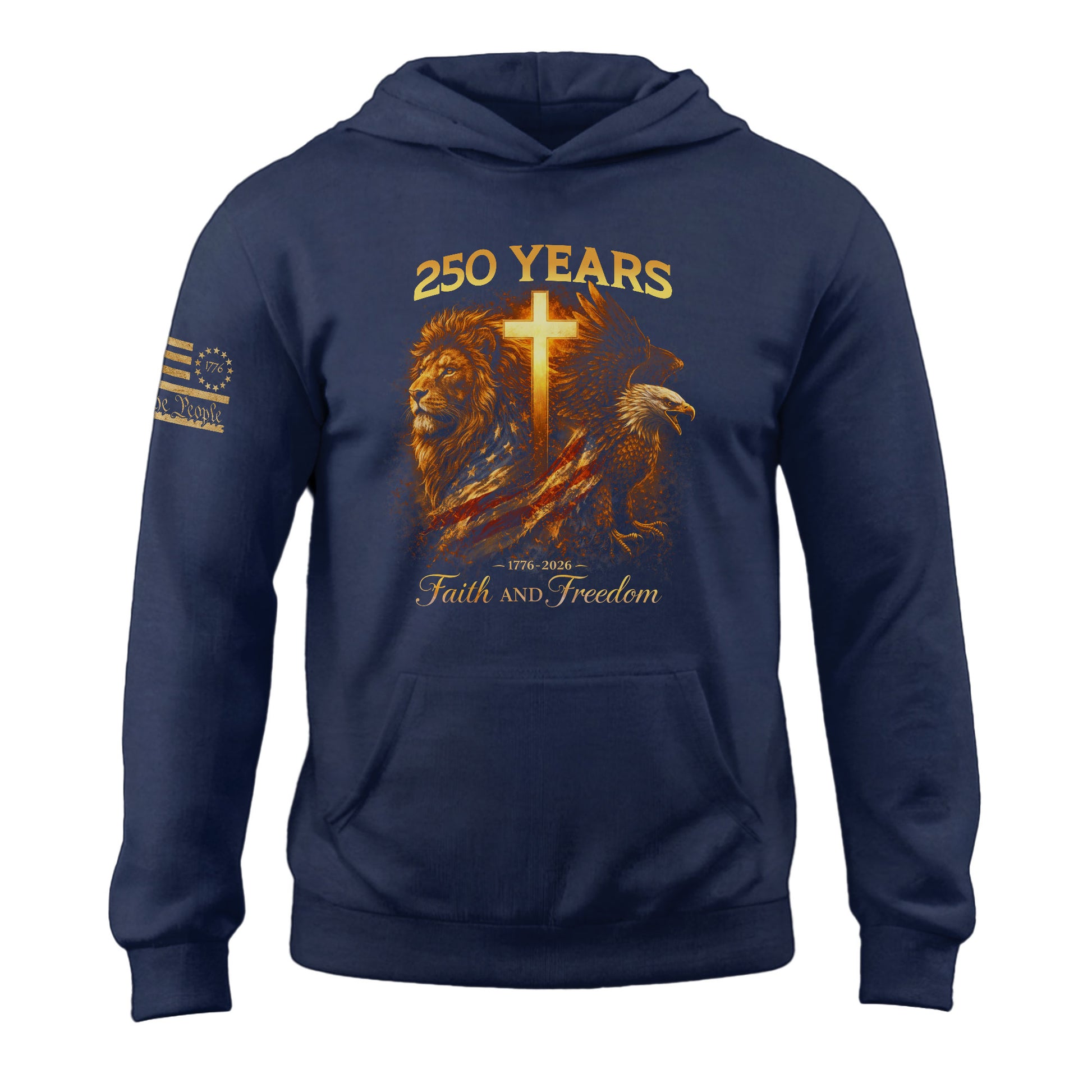 USA 250th Anniversary 1776-2026 Semiquincentennial Hoodie – Christian Lion & Eagle Faith and Freedom Cross Patriotic Hoodie