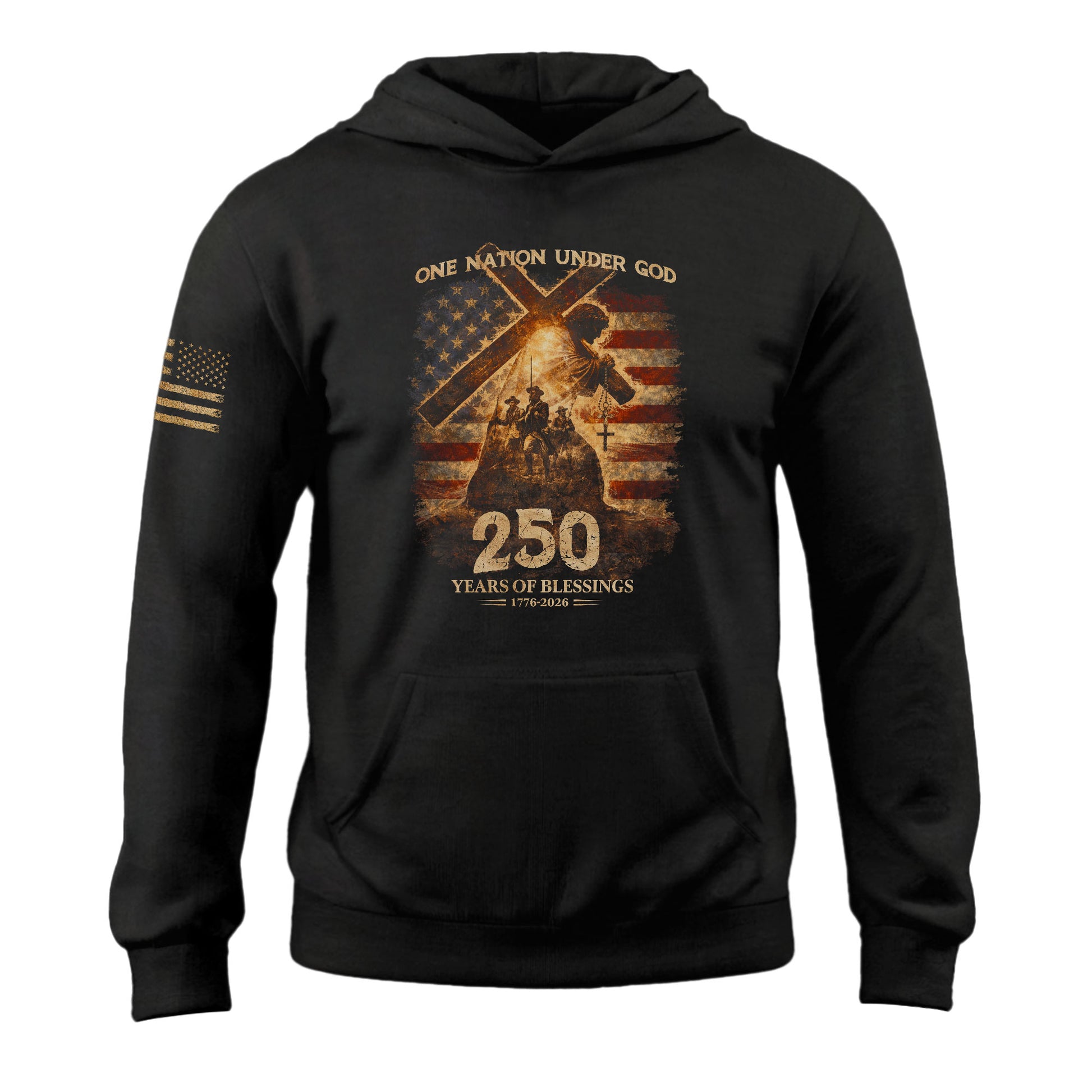USA 250th Anniversary 1776-2026 Semiquincentennial Hoodie – One Nation Under God Jesus Carrying Cross American Flag Christian Hoodie