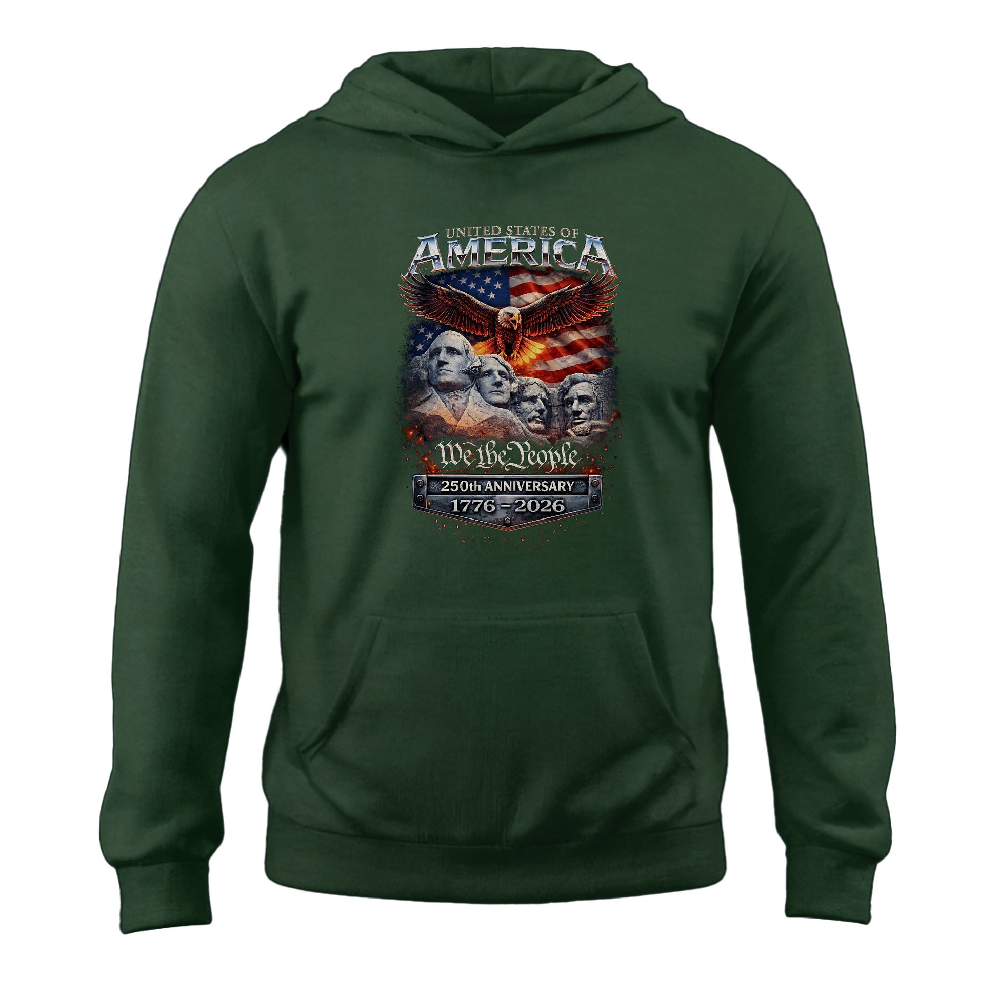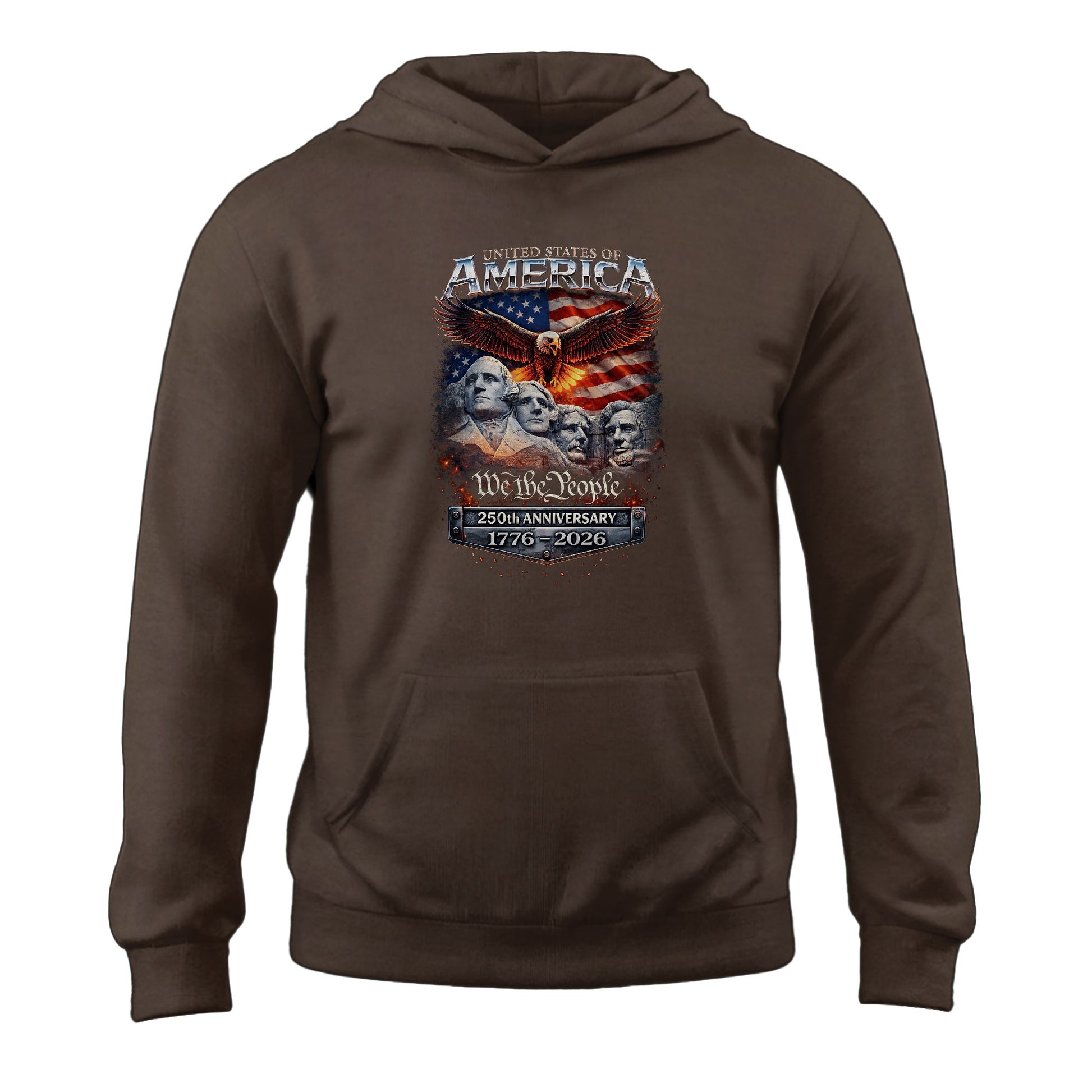 USA 250th Anniversary 1776-2026 Semiquincentennial Hoodie – Vintage Bootleg Mount Rushmore Eagle Flag Patriotic Streetwear