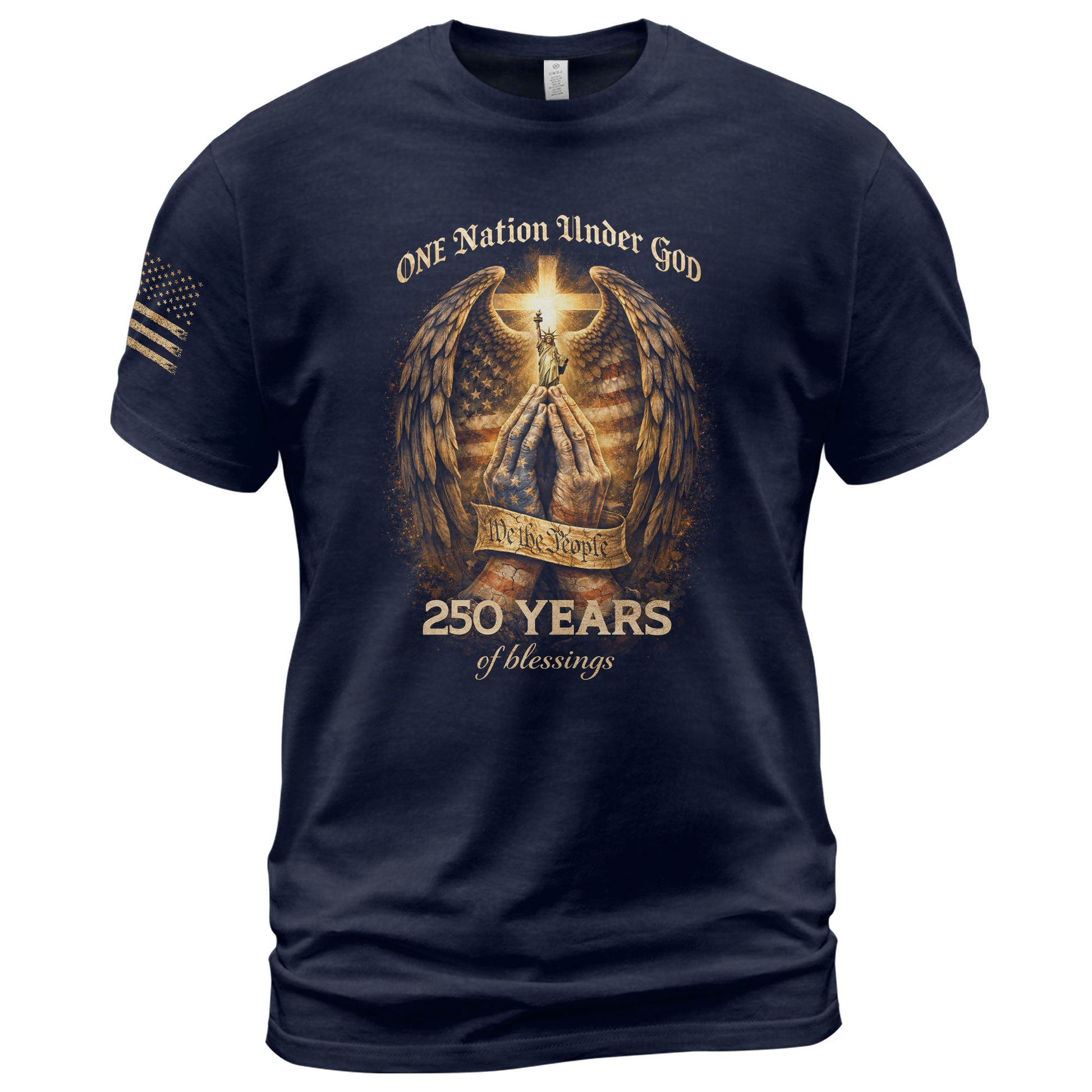 USA 250th Anniversary 1776-2026 Semiquincentennial T-Shirt – One Nation Under God 250 Years of Blessings Praying Hands Faith Patriotic Tee