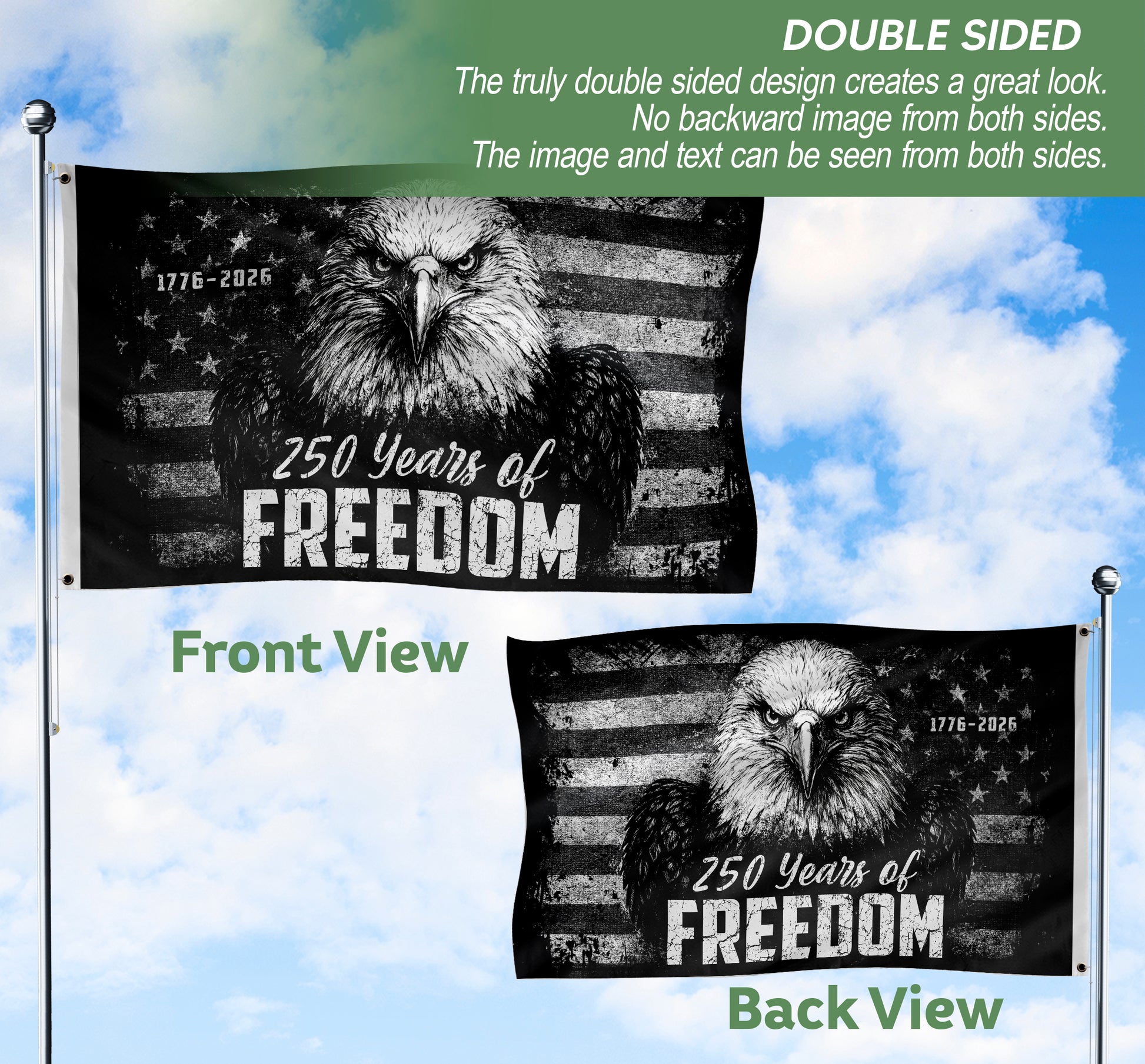 USA 250th Anniversary 250 Years of Freedom Flag 1776-2026 American Eagle