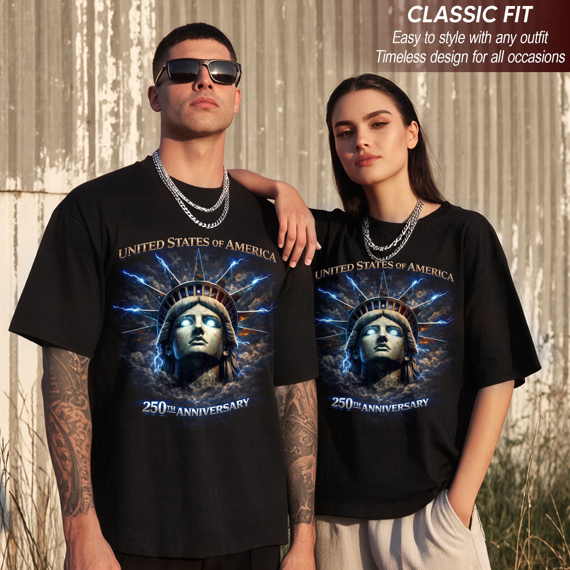 USA 250th Anniversary Bootleg Tee – Electric Liberty Crown Street Graphic