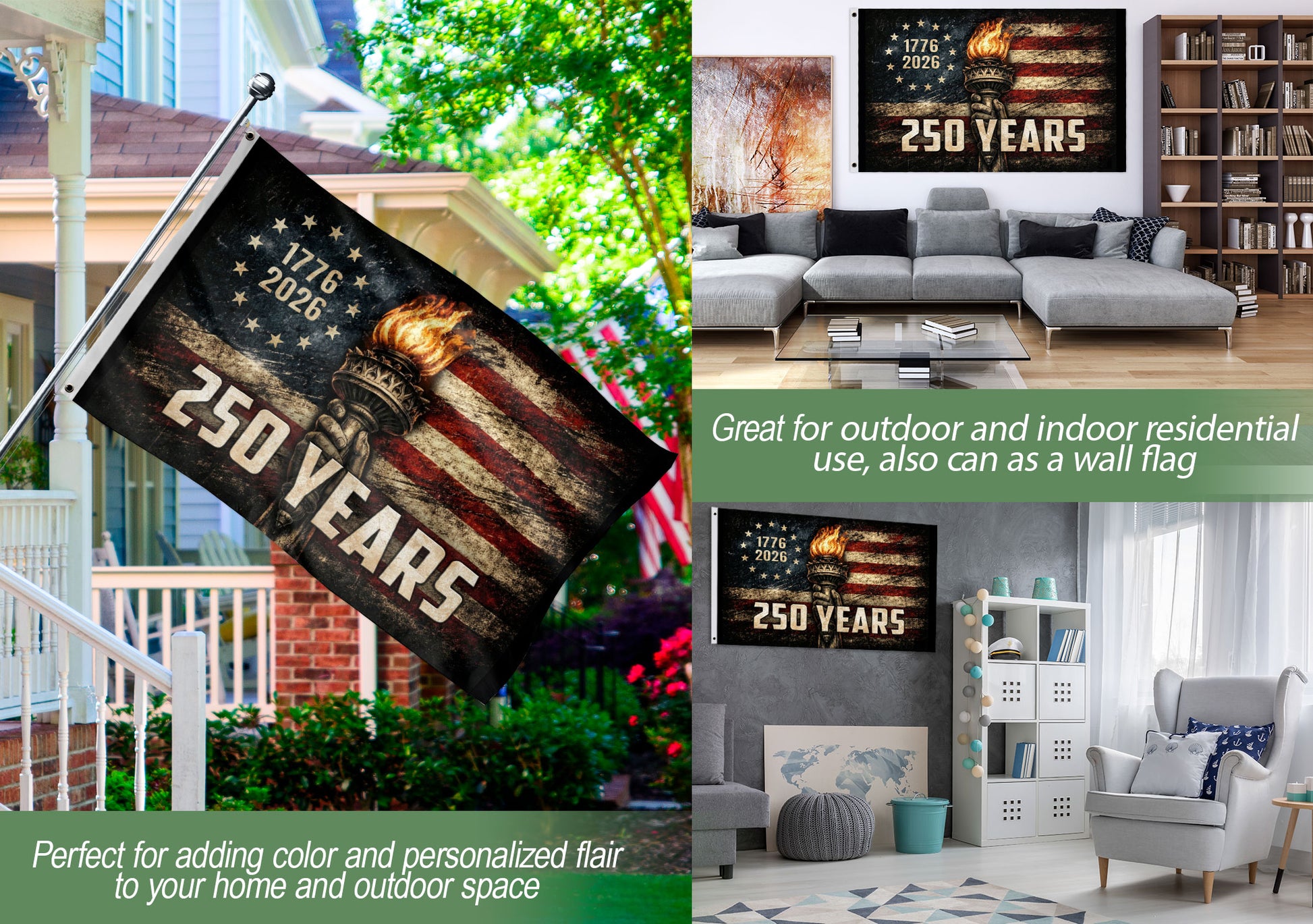 USA 250th Anniversary Flag 1776-2026 American Flag Liberty Torch Patriotic