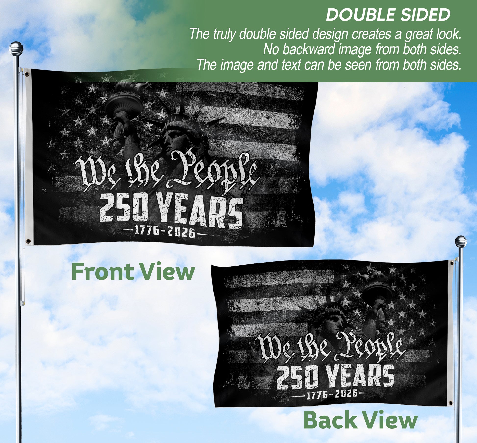 USA 250th Anniversary Flag 1776-2026 We The People Statue of Liberty Patriotic
