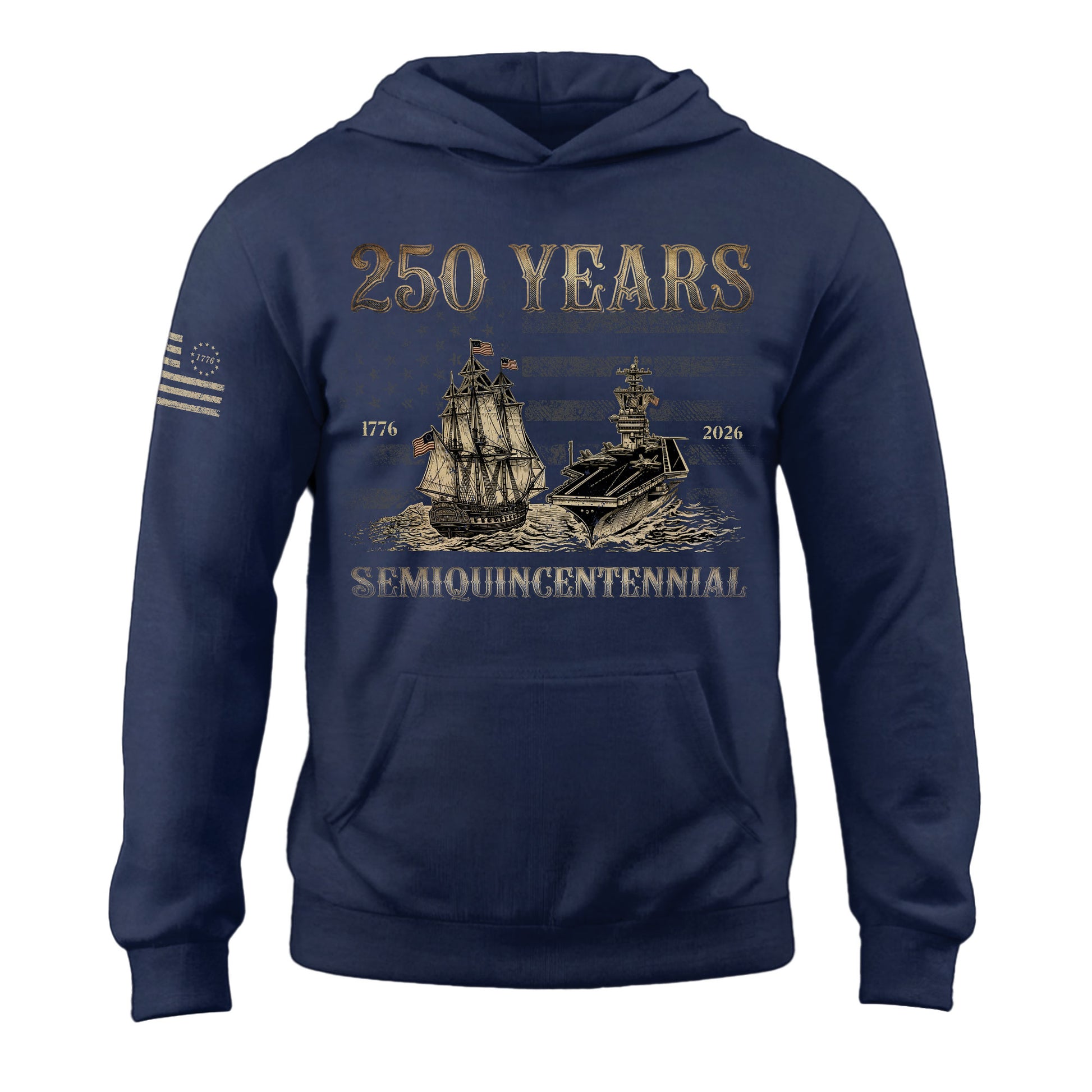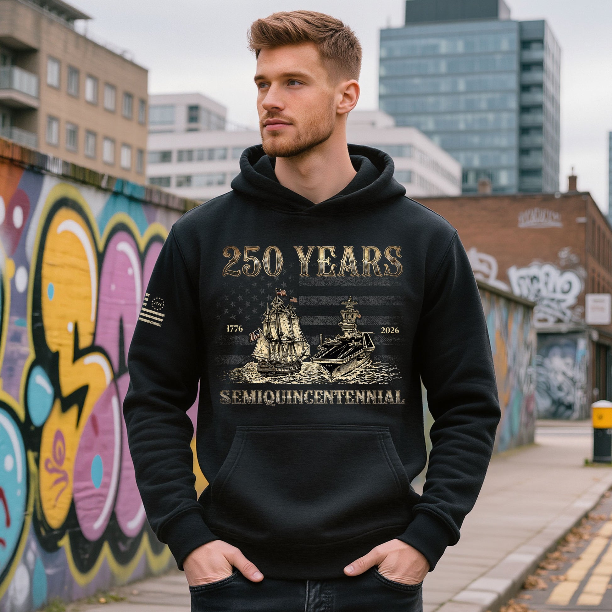 USA 250th Anniversary Hoodie Semiquincentennial 1776-2026 Retro American Sailing Ship Patriotic