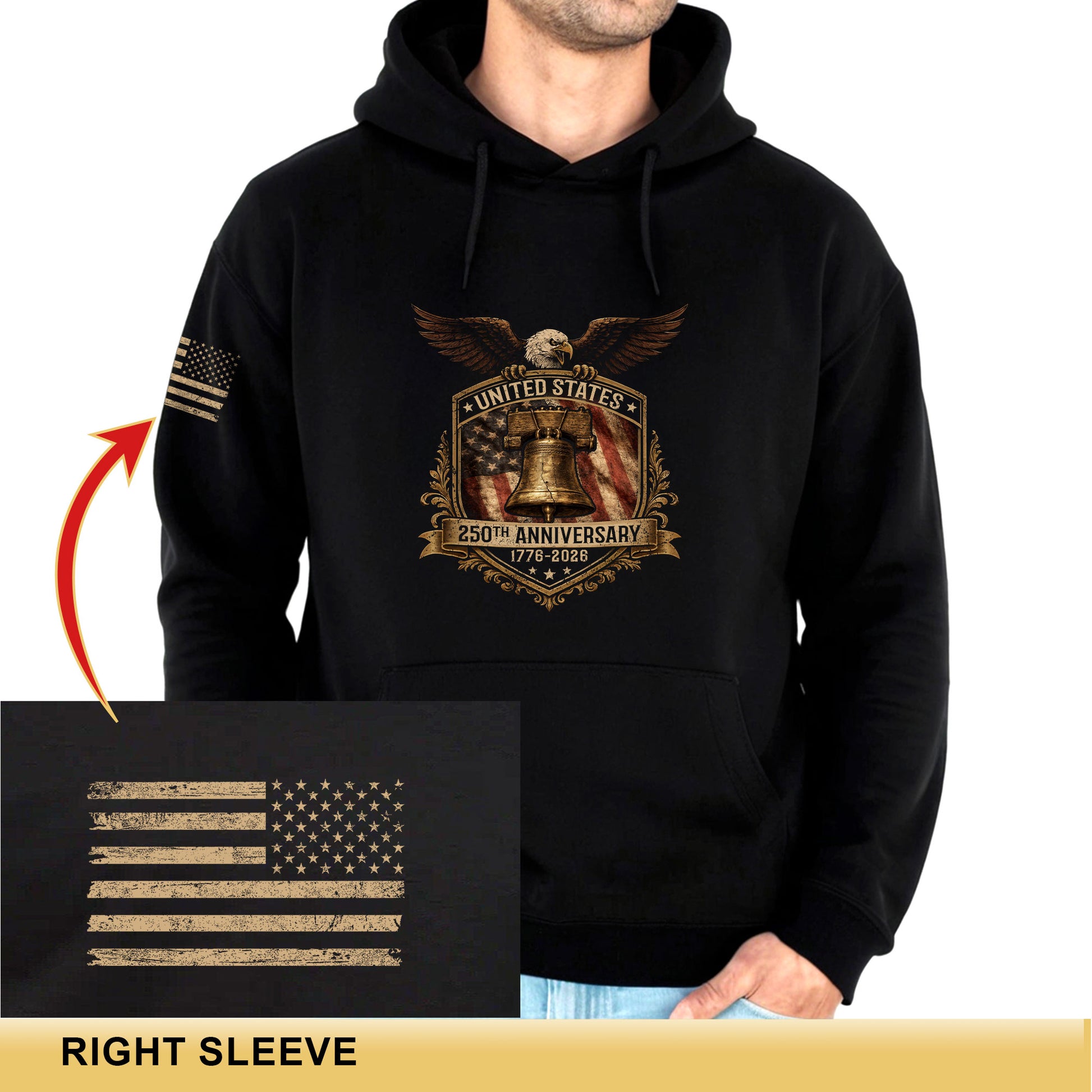 USA 250th Anniversary Semiquincentennial 250 Years Hoodie 1776-2026 Eagle Liberty Bell Shield Patriotic