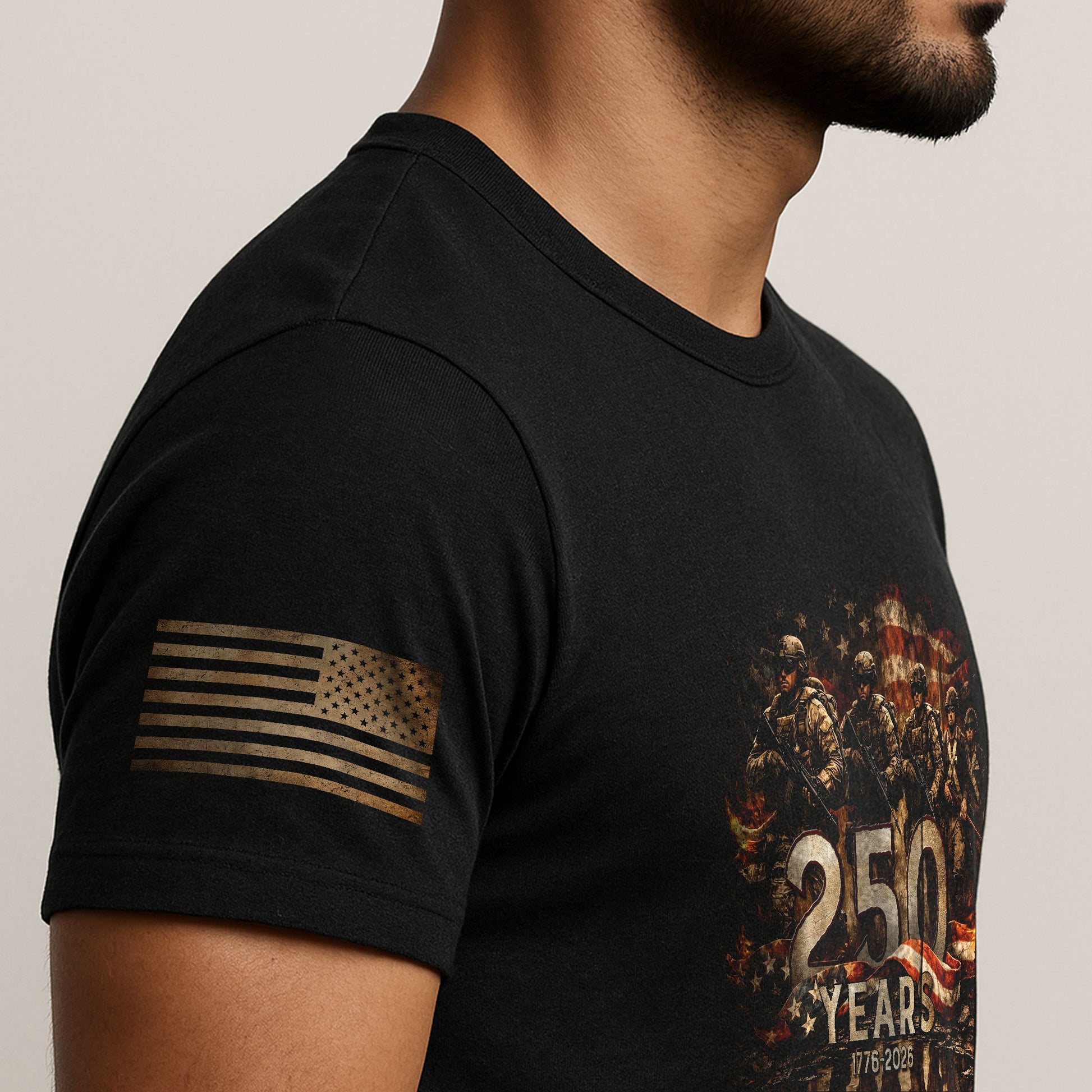 USA 250th Anniversary Semiquincentennial 250 Years Shirt 1776-2026 Brothers in Arms Patriotic Soldier Heritage