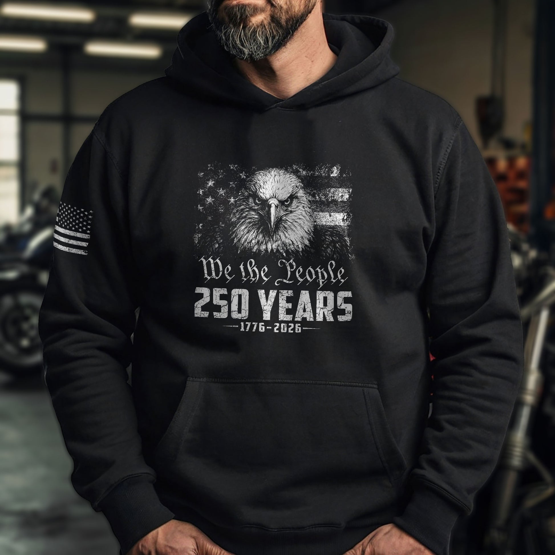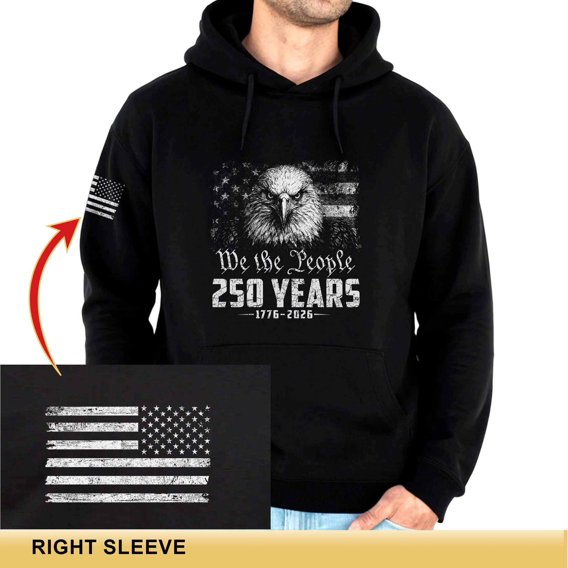 USA 250th Anniversary Semiquincentennial Hoodie 1776-2026 Distressed Flag We The People Eagle Heritage