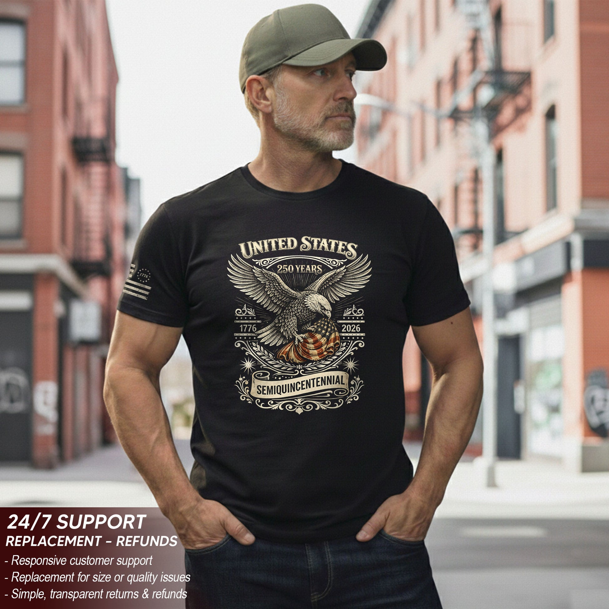 USA 250th Anniversary Shirt Semiquincentennial 1776-2026 American Flag Eagle Patriotic Mens