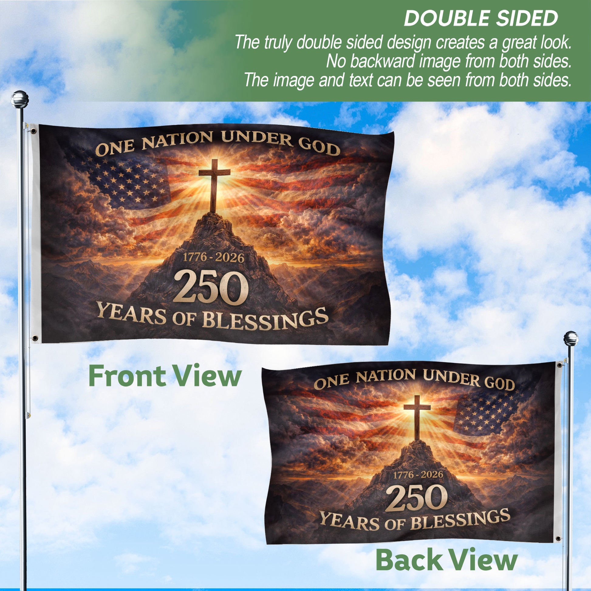 USA One Nation Under God 1776-2026 250th Anniversary Flag - Christian Patriotic 250 Years of Blessings Double-Sided House Flag
