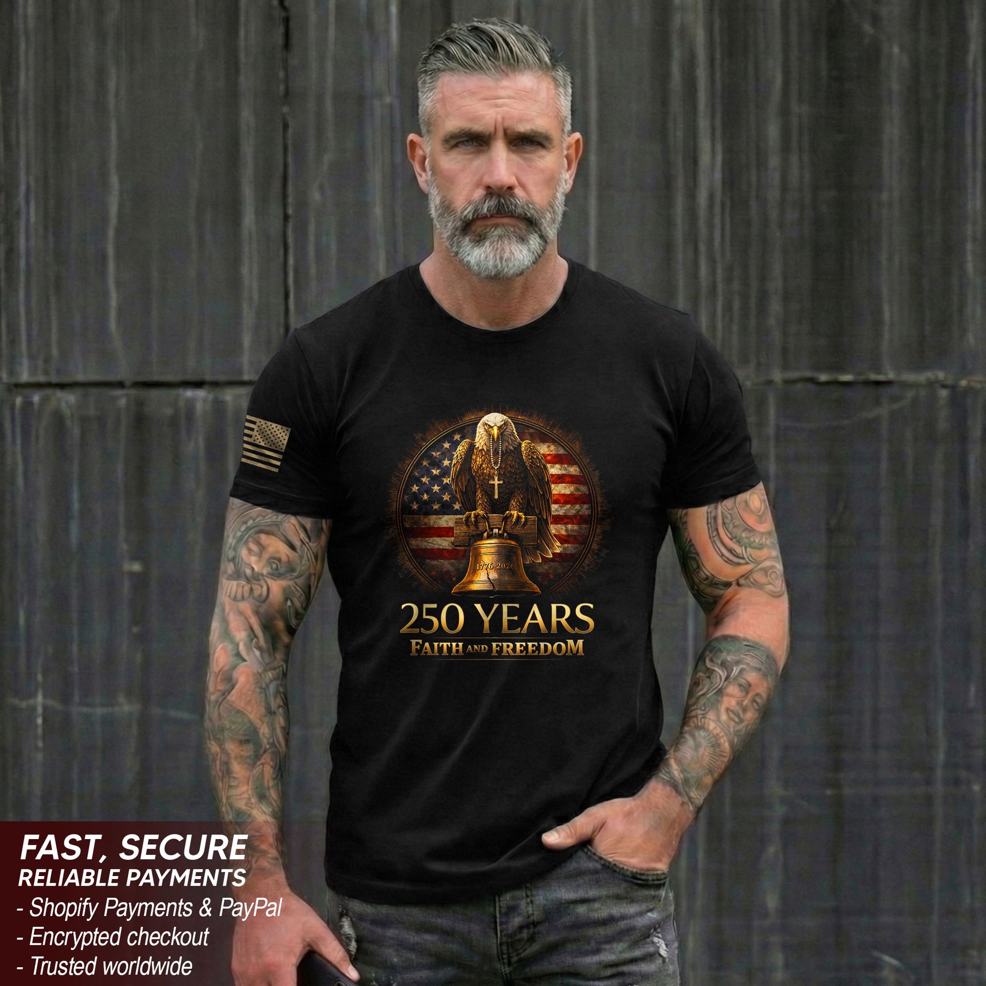 USA Semiquincentennial 250 Years Faith and Freedom 1776–2026 Eagle Liberty Bell Patriotic Christian T-Shirt