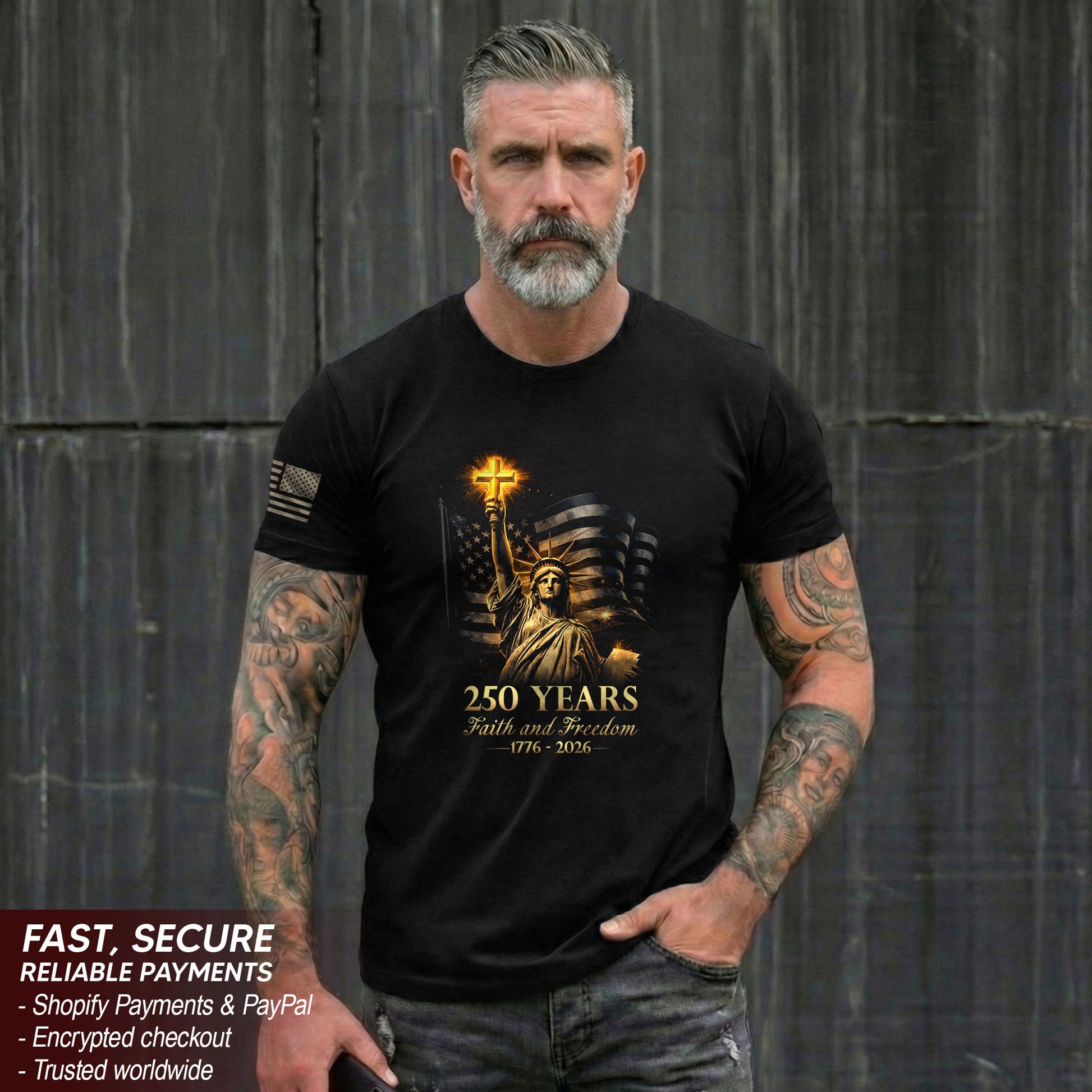 USA Semiquincentennial 250 Years Faith and Freedom 1776–2026 Statue of Liberty Christian Patriotic Shirt