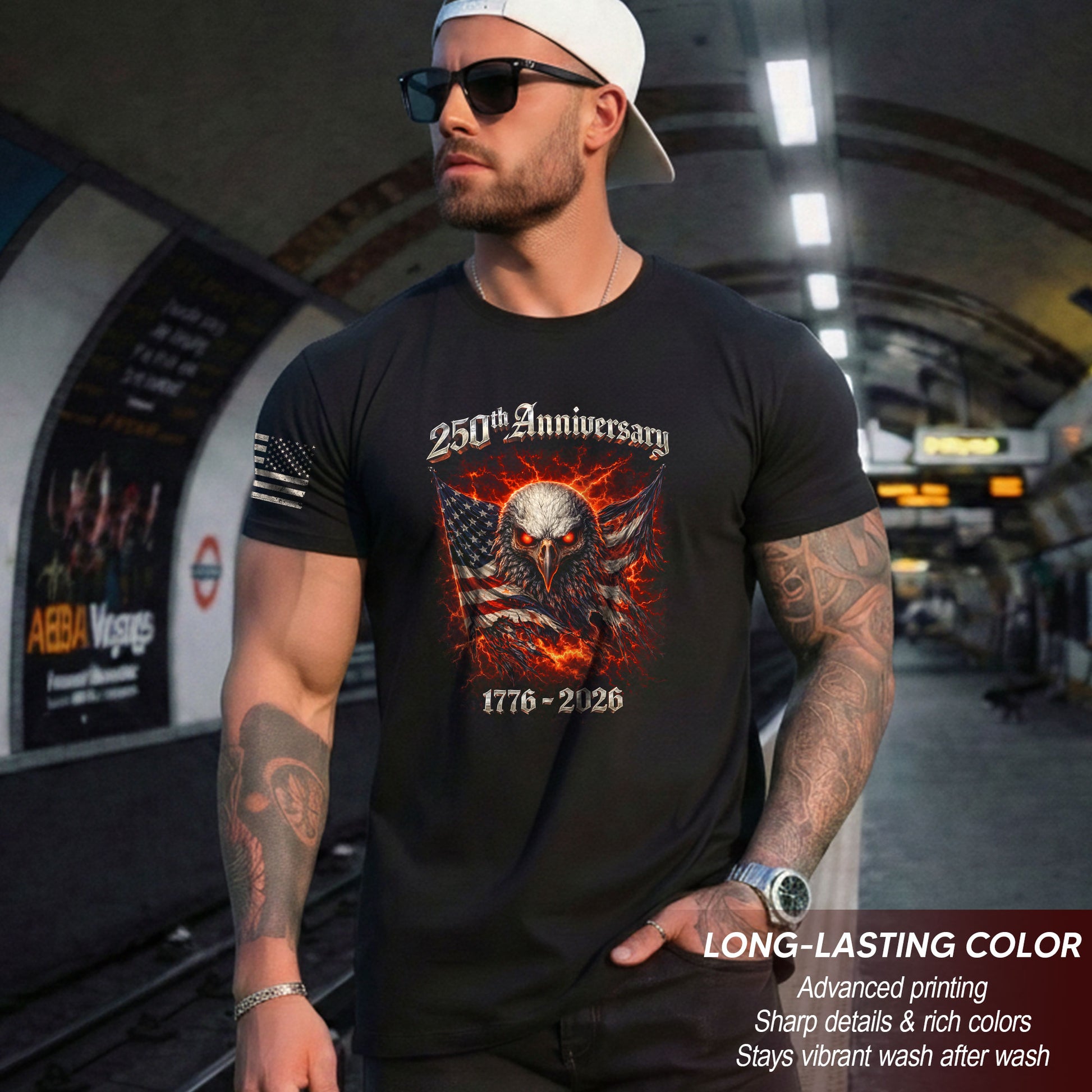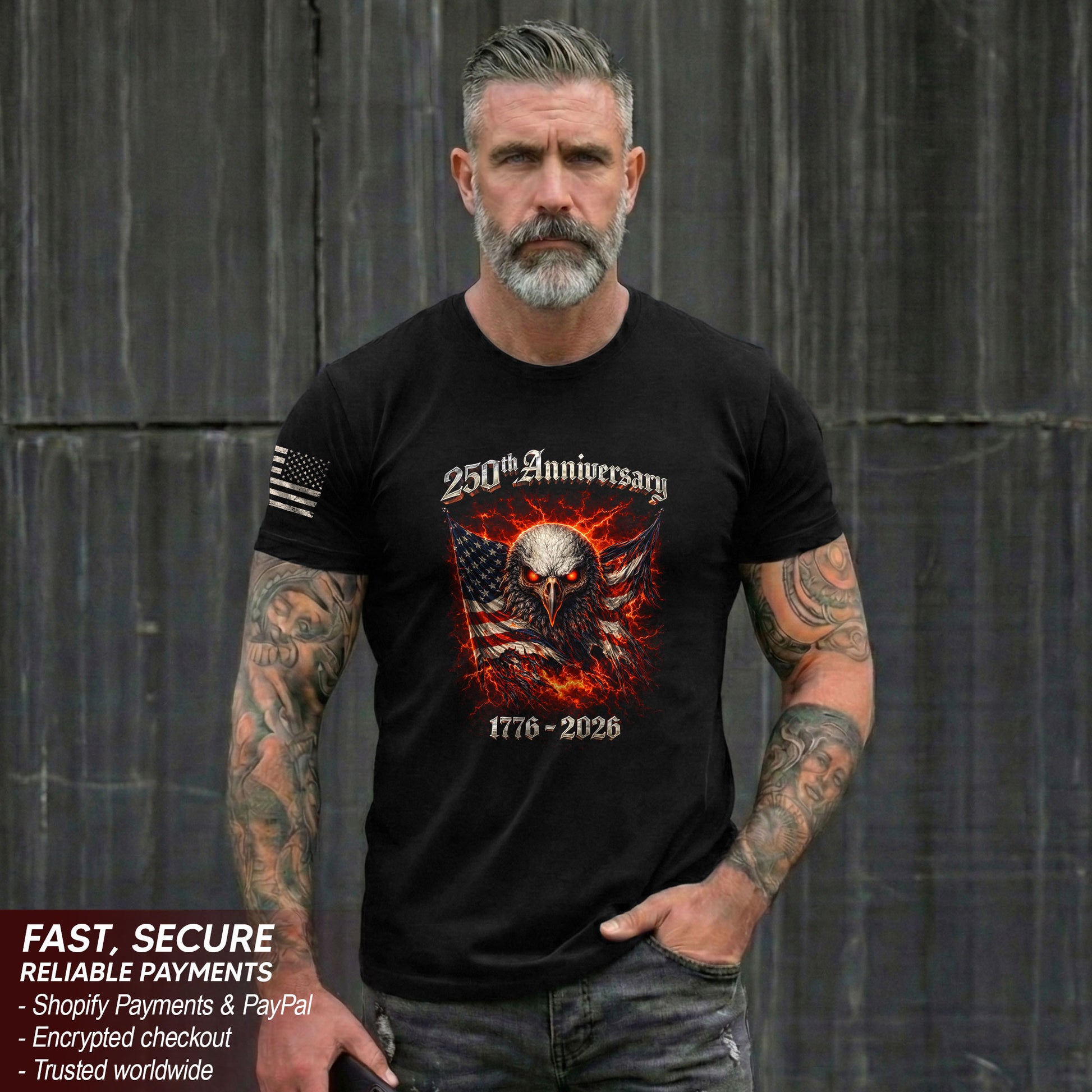 Vintage America 250th Anniversary Bootleg T-Shirt - 1776-2026 Fire Eagle Streetwear Tee, Semiquincentennial Lightning Graphic Shirt