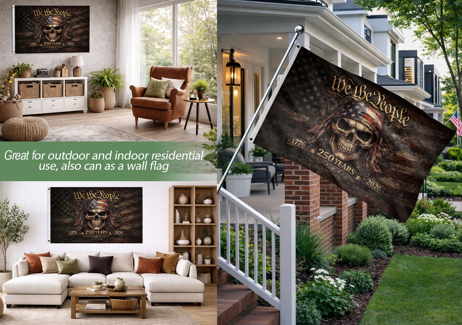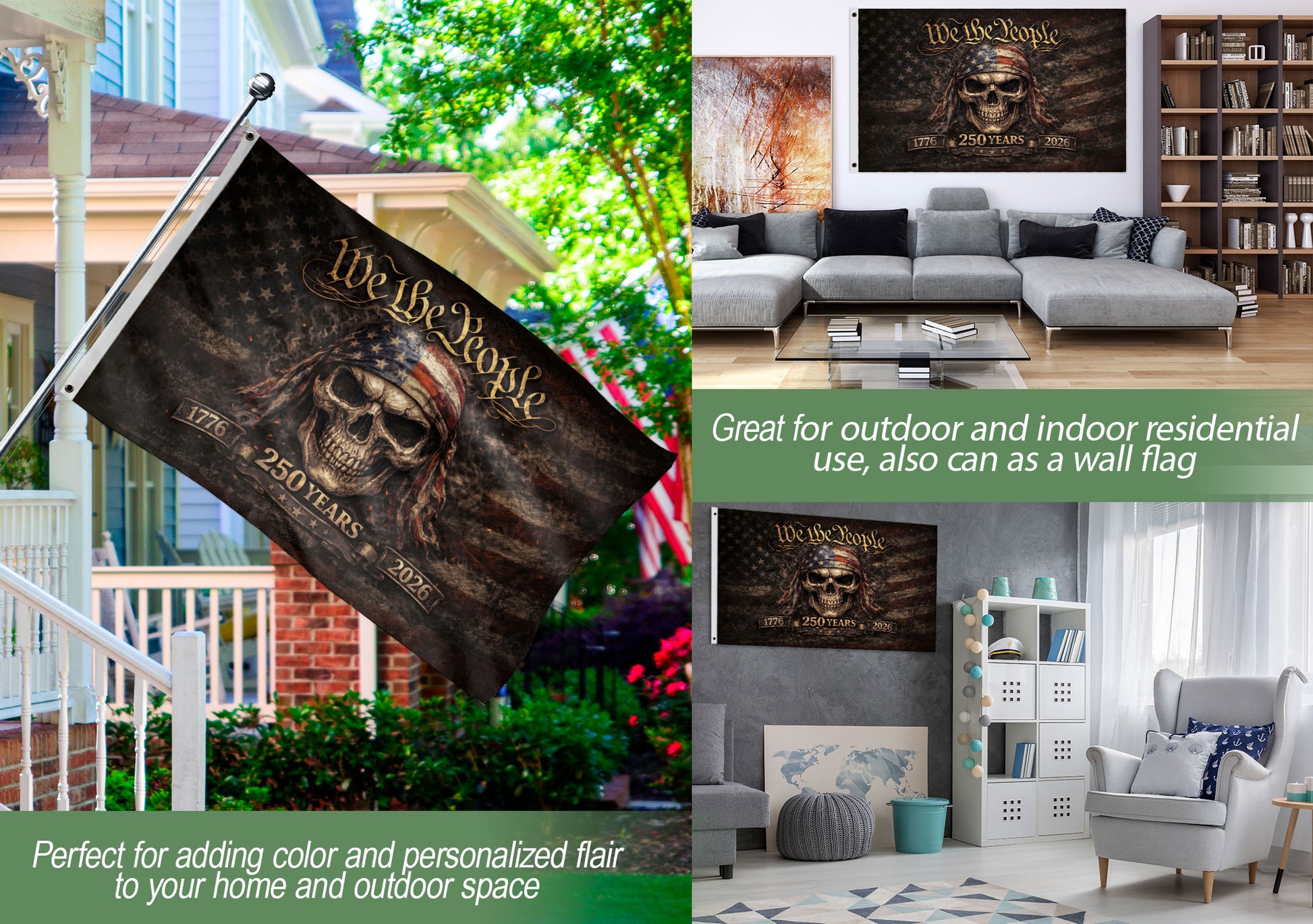 We The People 1776–2026 Flag – Patriotic Skull 250 Years House Flag.
